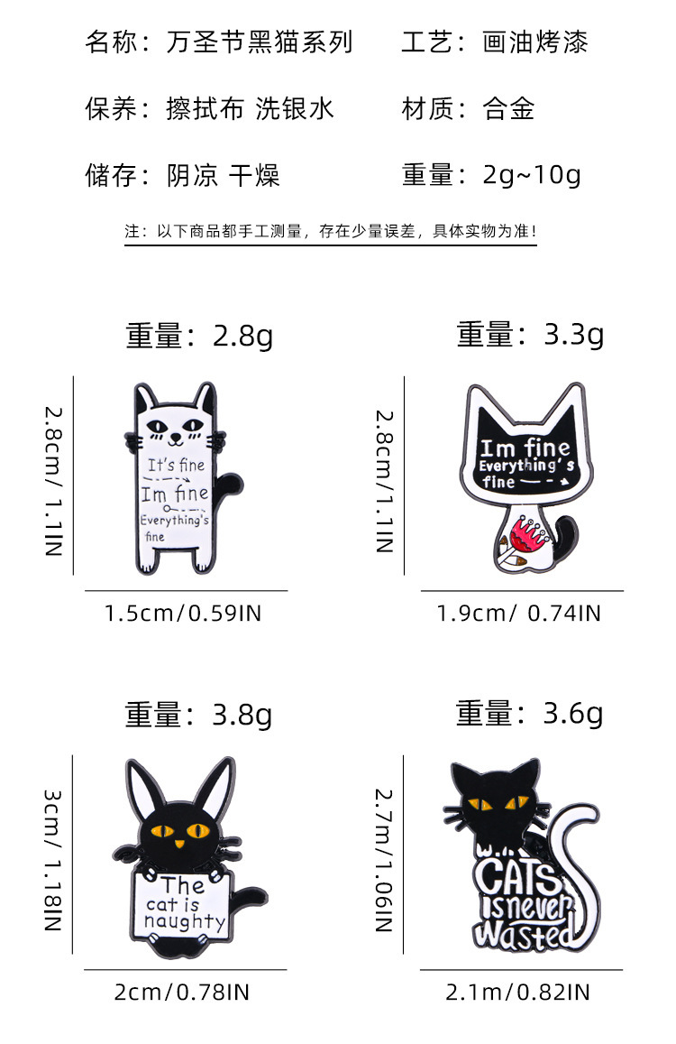 漫画クリエイティブ猫バッジpinかわいい黒猫個性服装アクセサリーブローチカップル学生かばん装飾