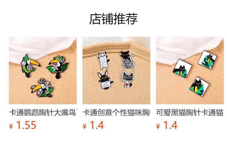 黒猫と植物ブローチ学生漫画バッジリュックサック装飾品アクセサリーピンクロスボーダー外国貿易人気バッジ