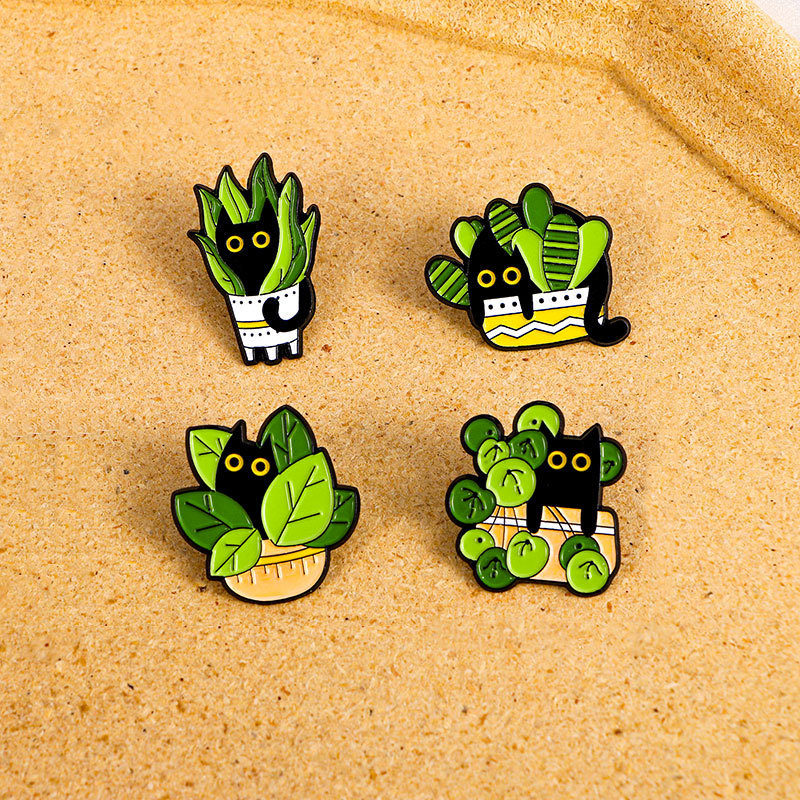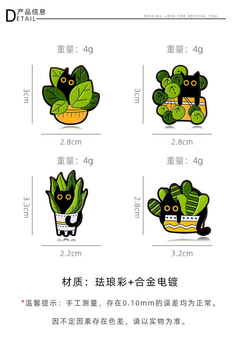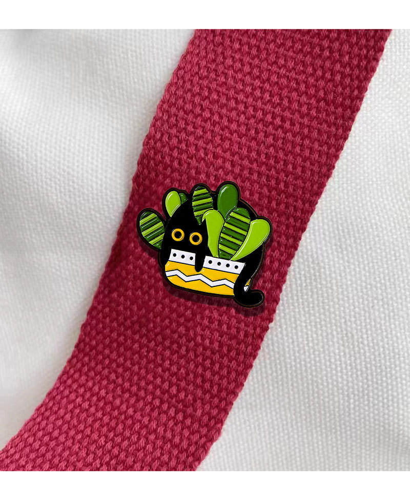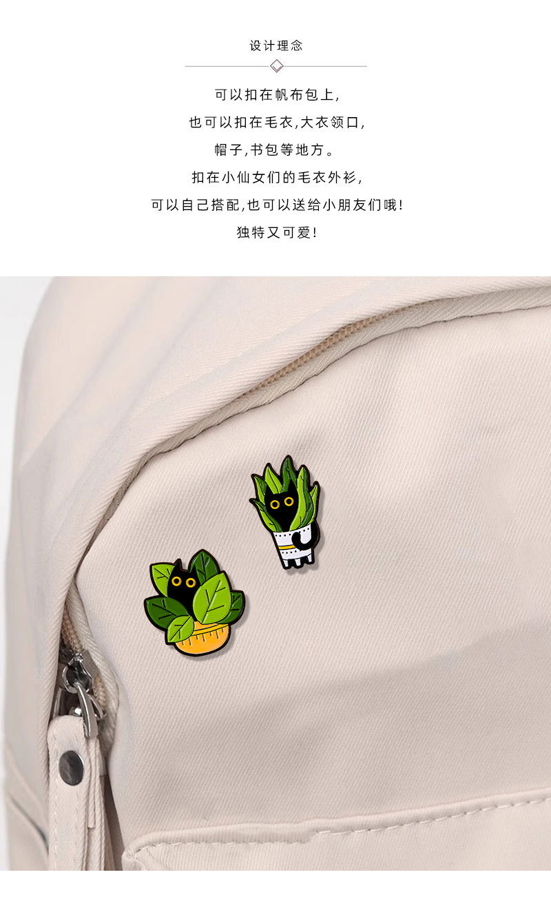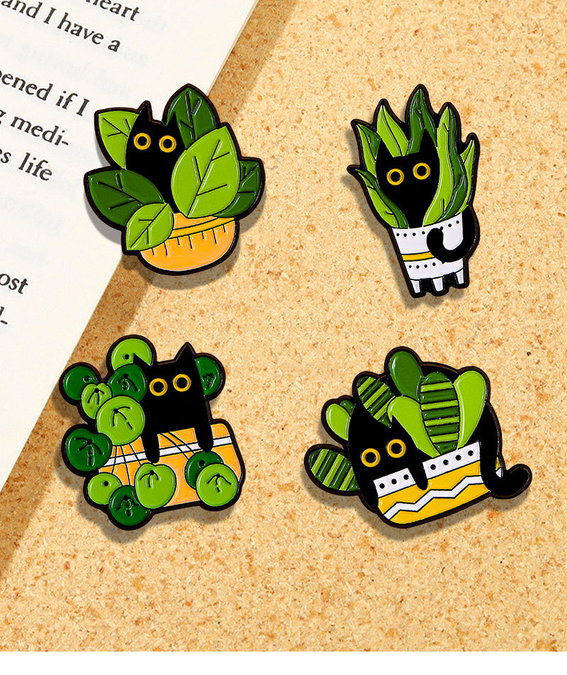 越境新品滴油漫画盆栽植物かわいい黒猫バッジ動物合金ブローチバッグ服