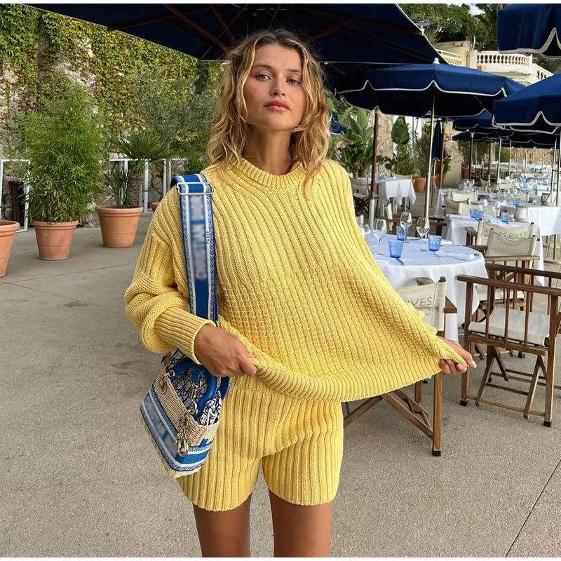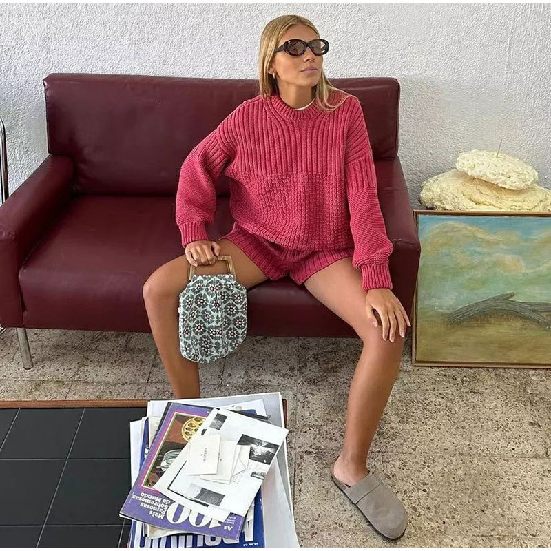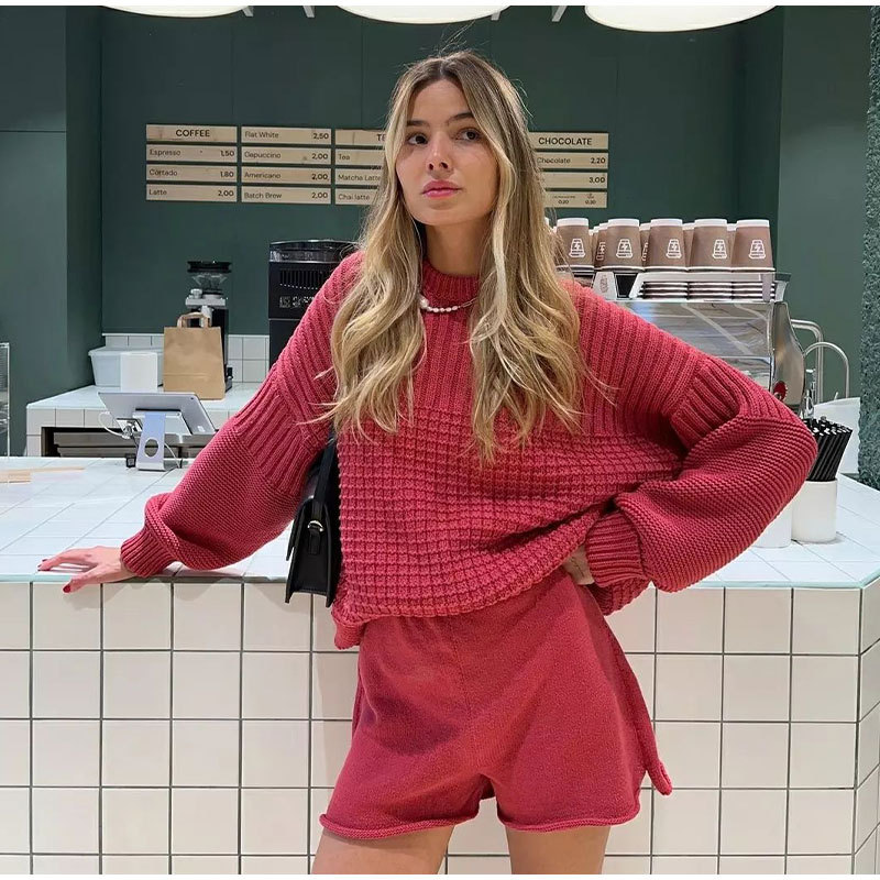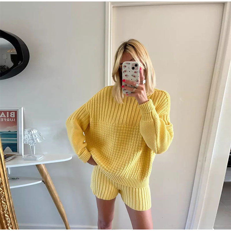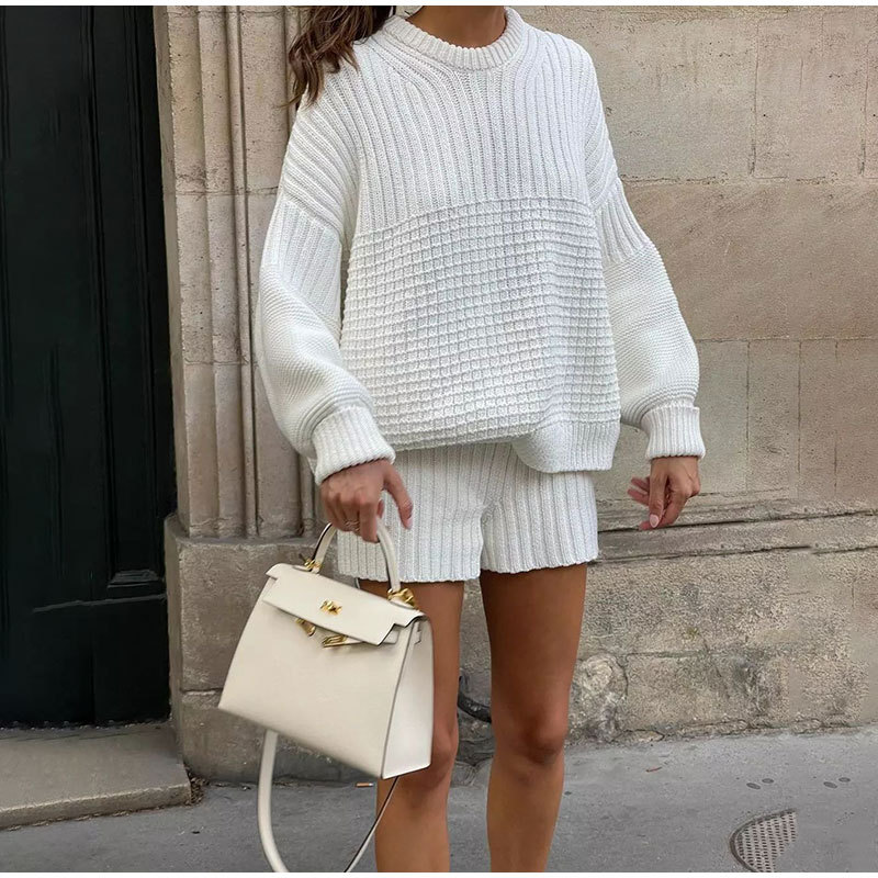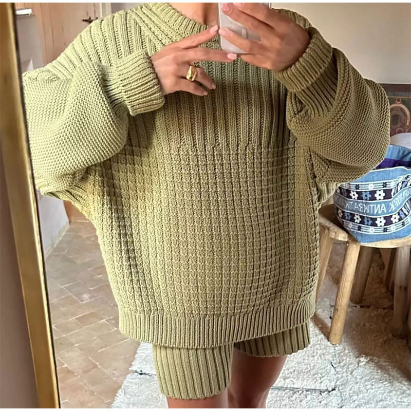 アマゾンファッションスーツ秋冬新作欧米風ニット丸首長袖ゆるいカジュアルパンツ2点セット女性