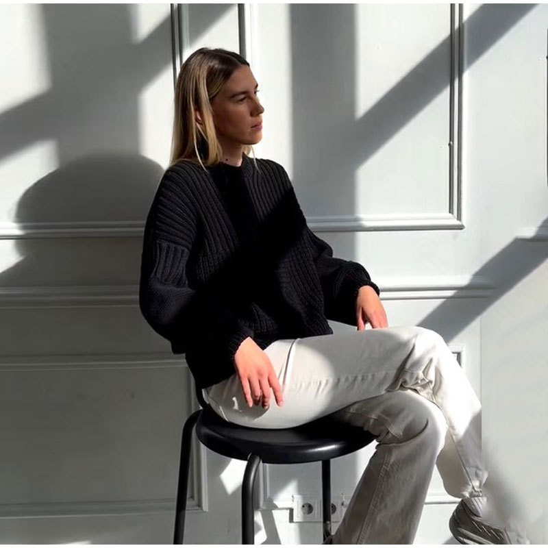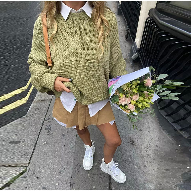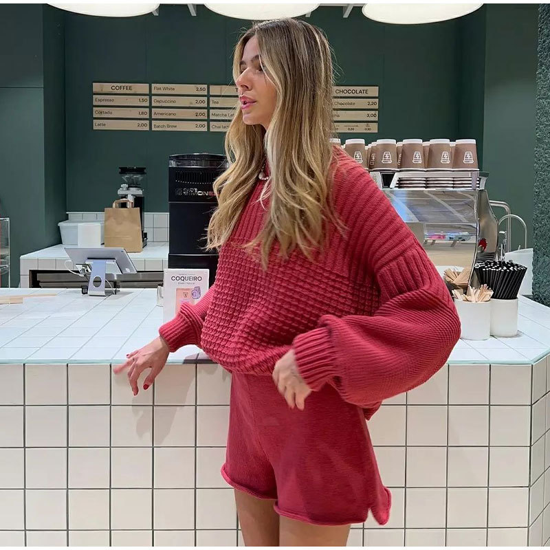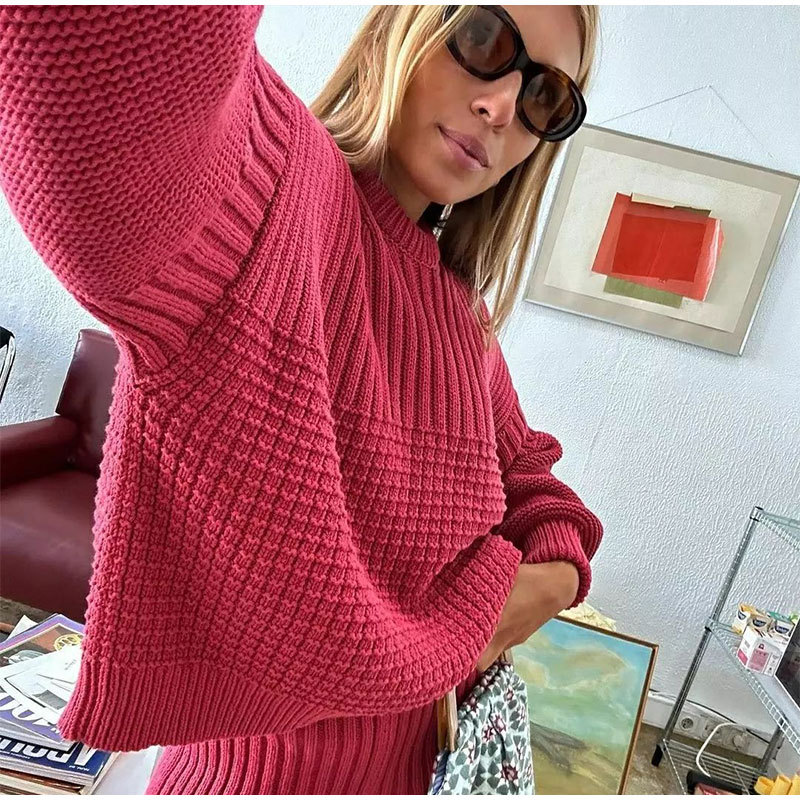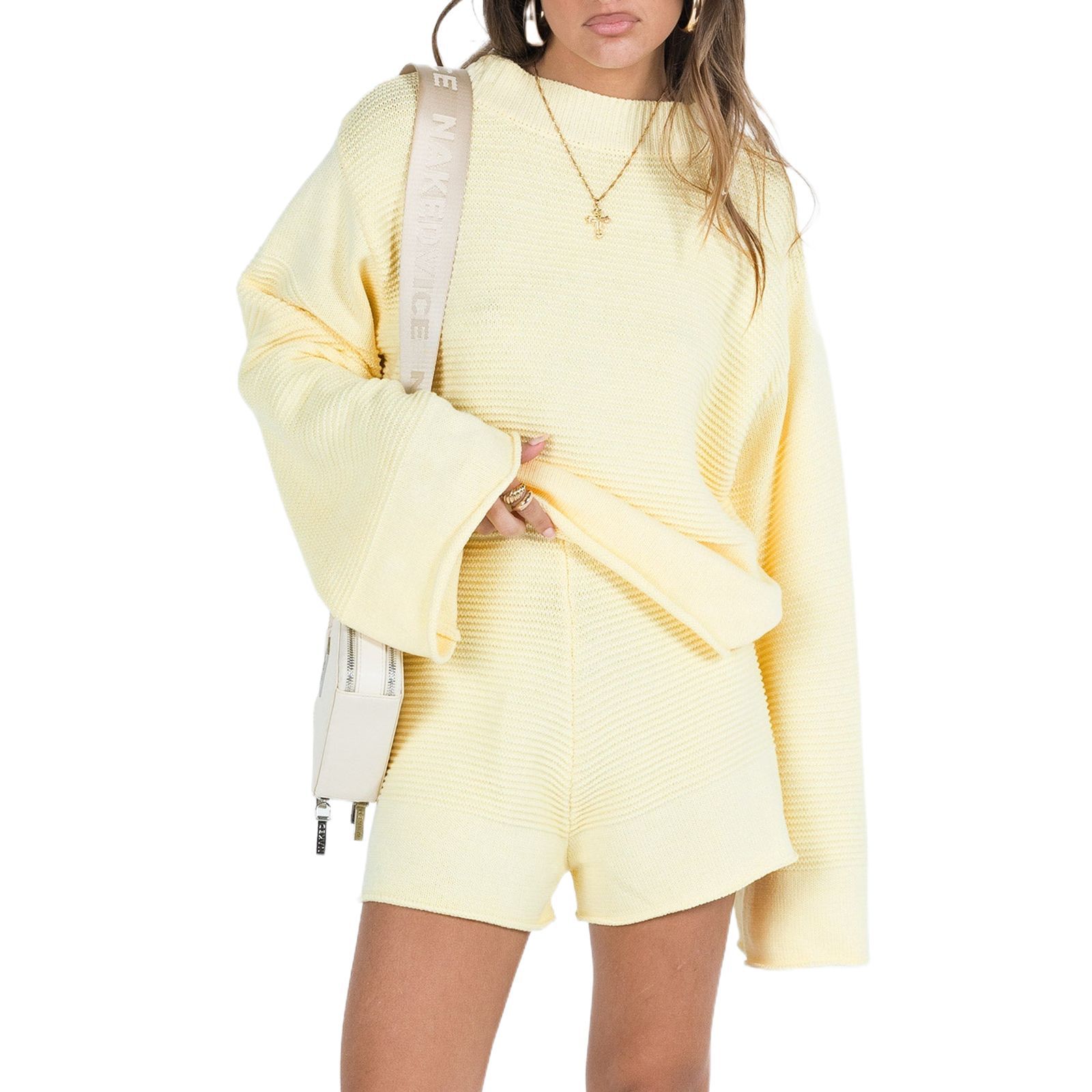 アマゾンファッションスーツ秋冬新作欧米風ニット丸首長袖ゆるいカジュアルパンツ2点セット女性