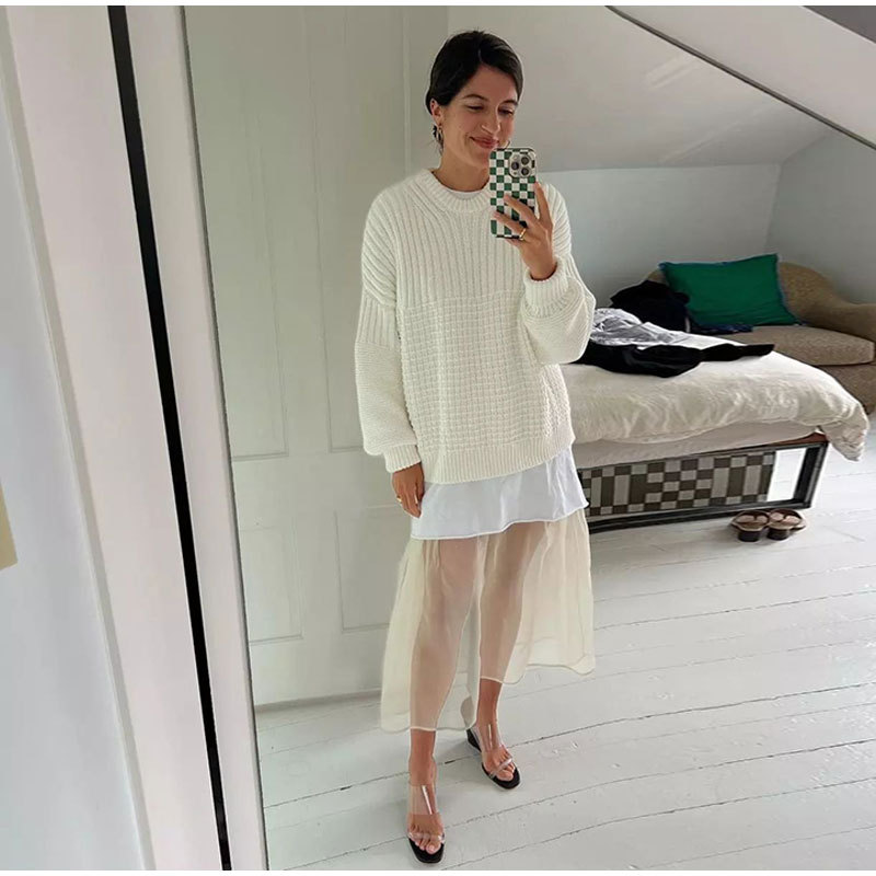おならのカーテンは底の神器の半身のスカートを打って、カーディガンの女性の秋冬のセーターを組み合わせて重ねて着ます。