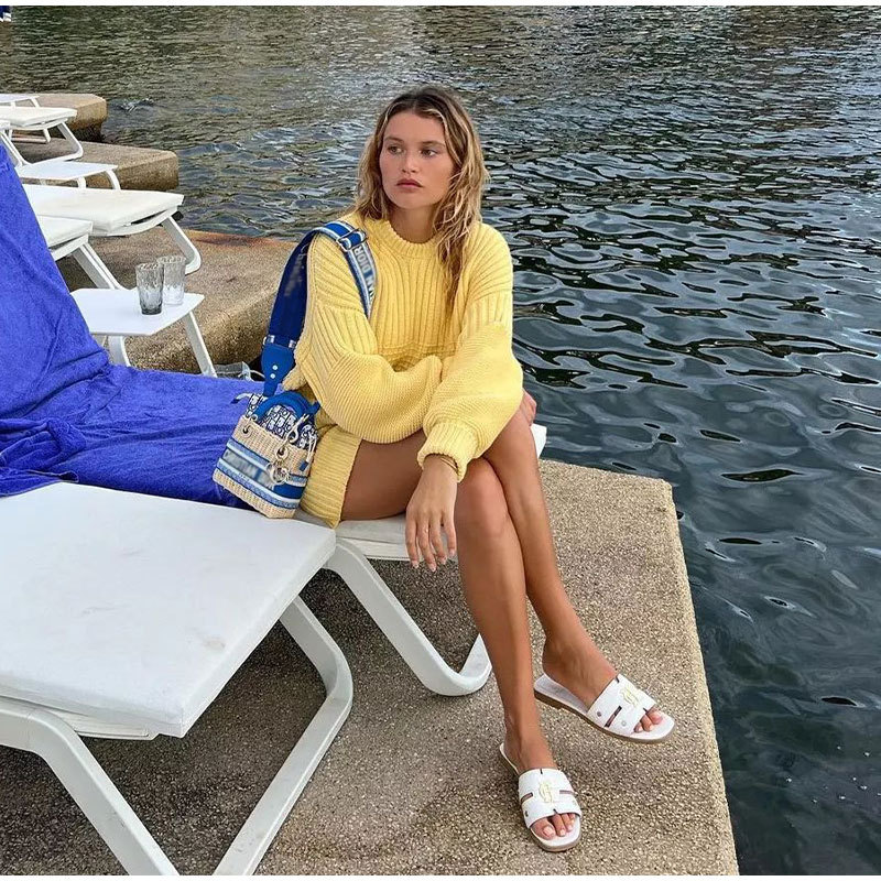 欧米の婦人服2025春夏純色ファッションセクシーな透かし透視斜め襟の海辺のビーチのお尻のワンピース