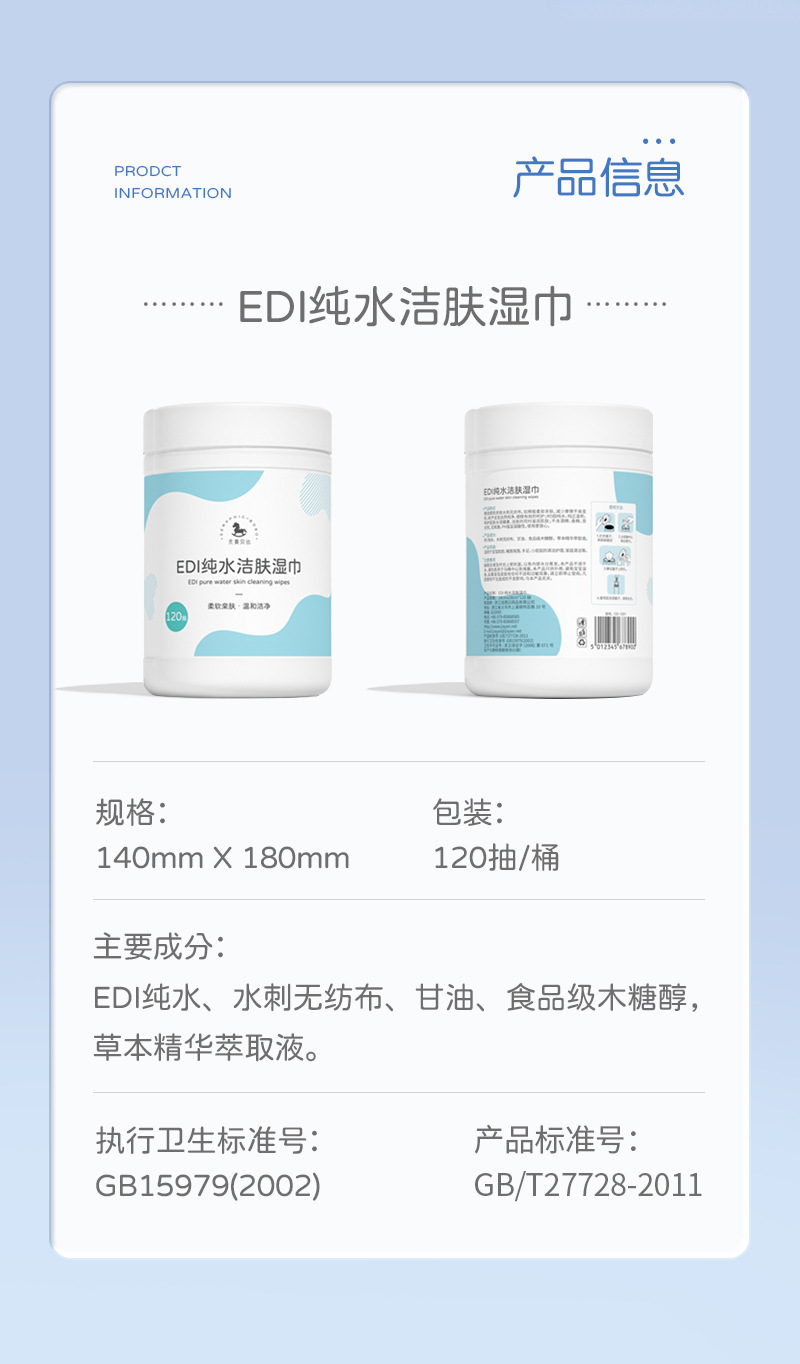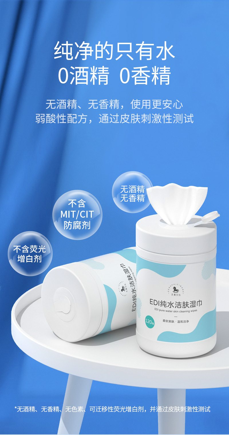 120 パンチ大型バレル EDI 純水クレンジングワイプ手と口の衛生ワイプ母親と赤ちゃんが利用可能在庫卸売