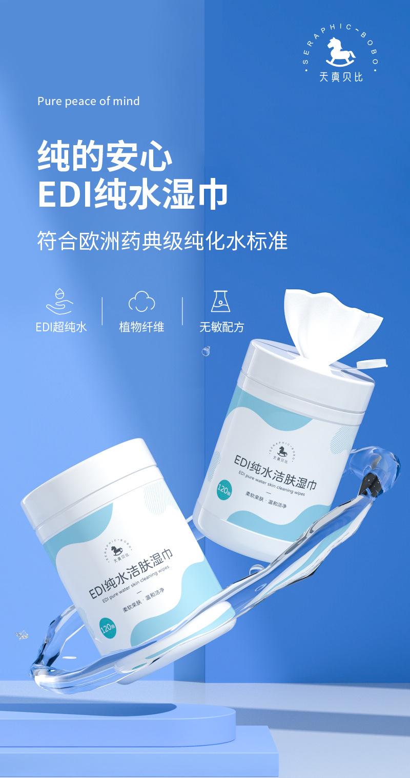 120 ポンプバレル EDI 純水ベビーワイプ大パックウェットワイプ家族手頃な価格の手と口のクリーニング使い捨て