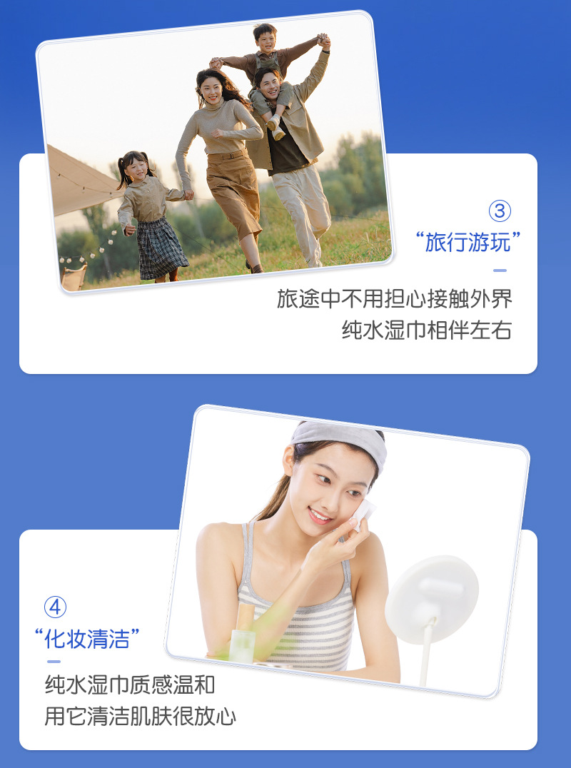 ウェットティッシュのバッグ80は赤ちゃん専用の純水手口でウェットティッシュを清潔にしています。