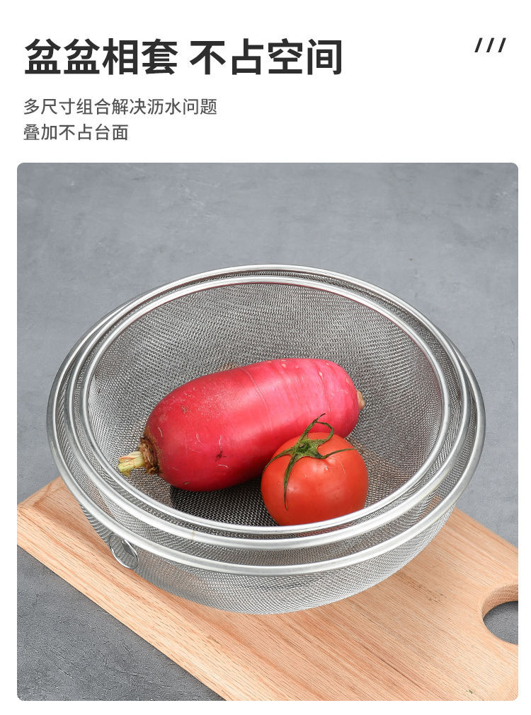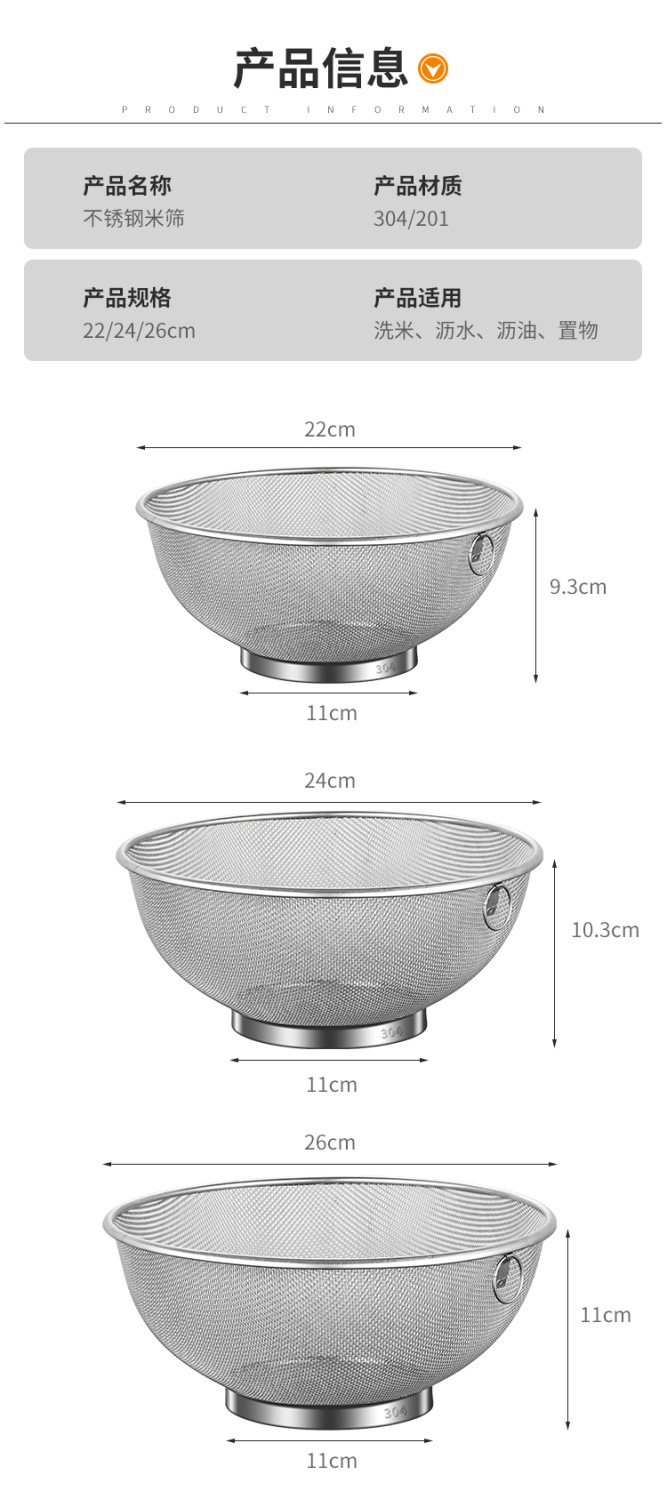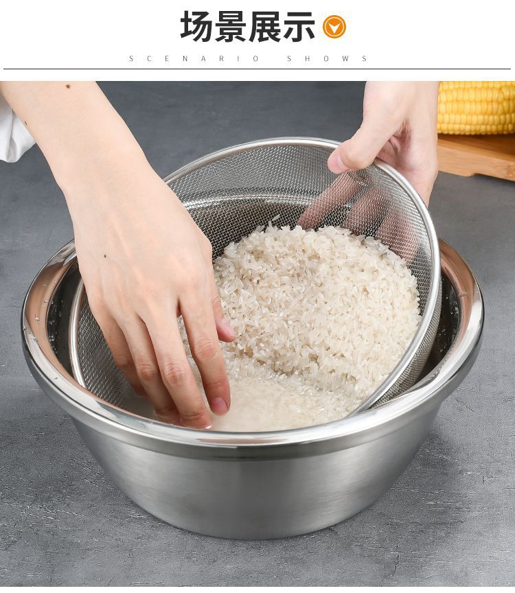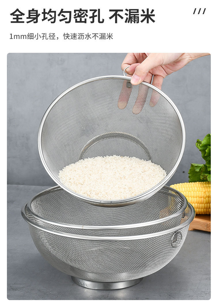 ステンレス製水切りかご、両耳深め米と野菜洗い桶、細孔米洗いふるい桶、果物多目的穴あき桶