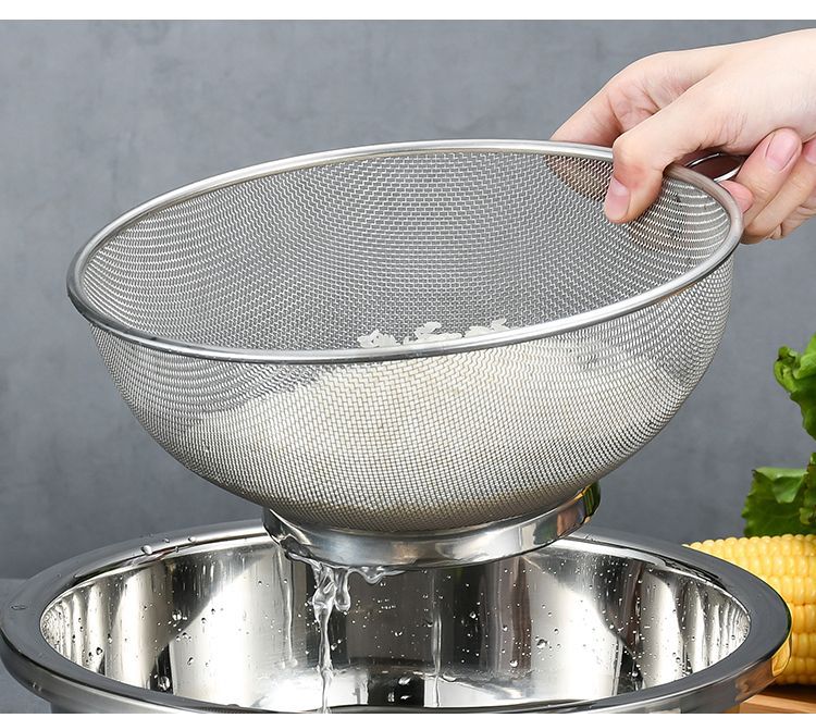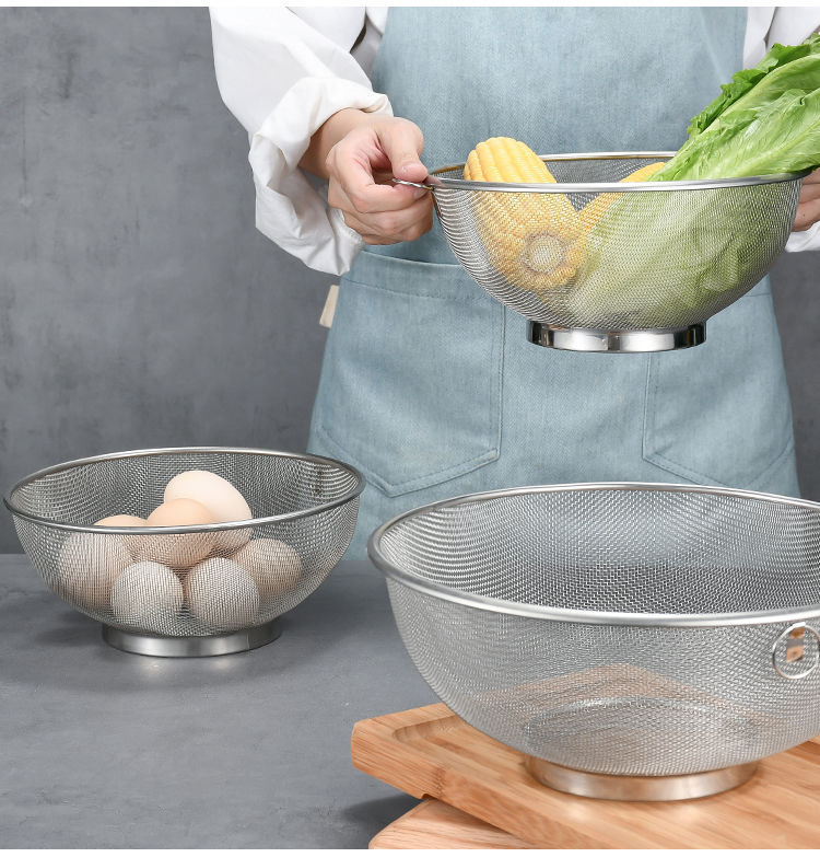 ステンレスの箕の密な穴の水を切って野菜のたらいの台所の大きいサイズを干します。