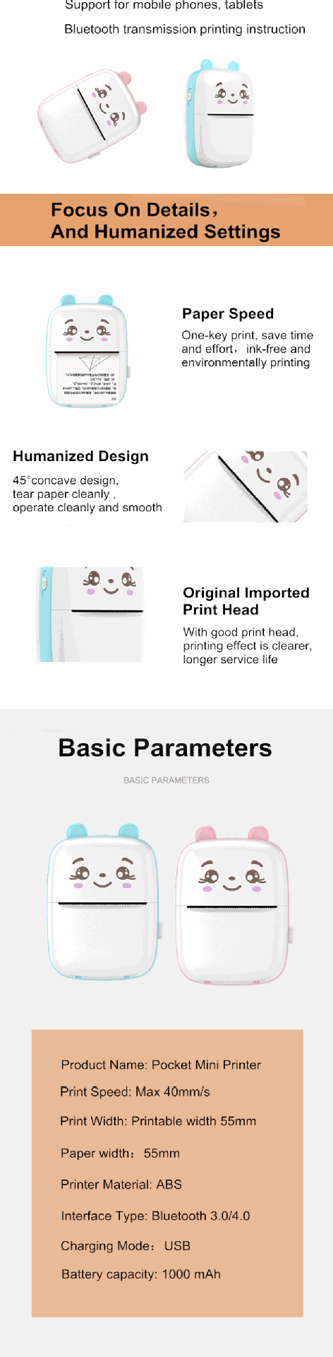 クロスボーダー小型ミニプリンタ無線感熱ミスポケット写真ステッカーラベルbluetooth工場卸売り