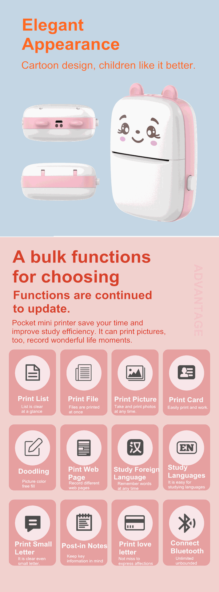 クロスボーダーミニラベルサーマルプリンタ携帯電話写真小型ミスプリンタ学生ポケットプリンタ