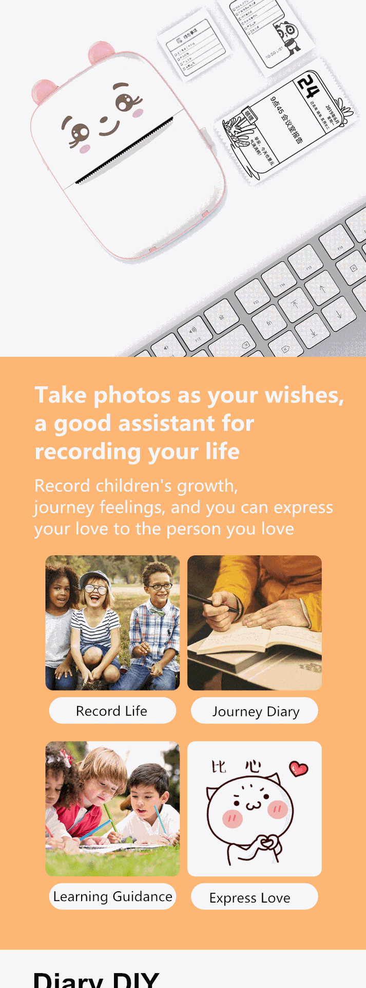 迷你打印机儿童便携式热敏机口袋照片学生错题搜题蓝牙标签打印机