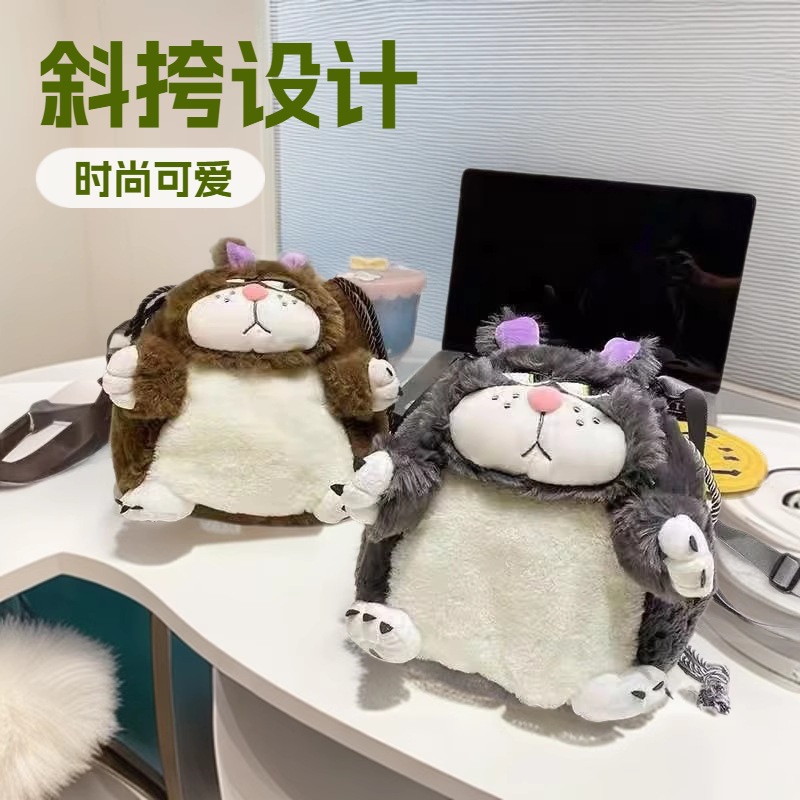 丑萌路西法猫单肩包大肥猫可爱猫猫卡通毛绒包女生玩偶抽绳斜挎包
