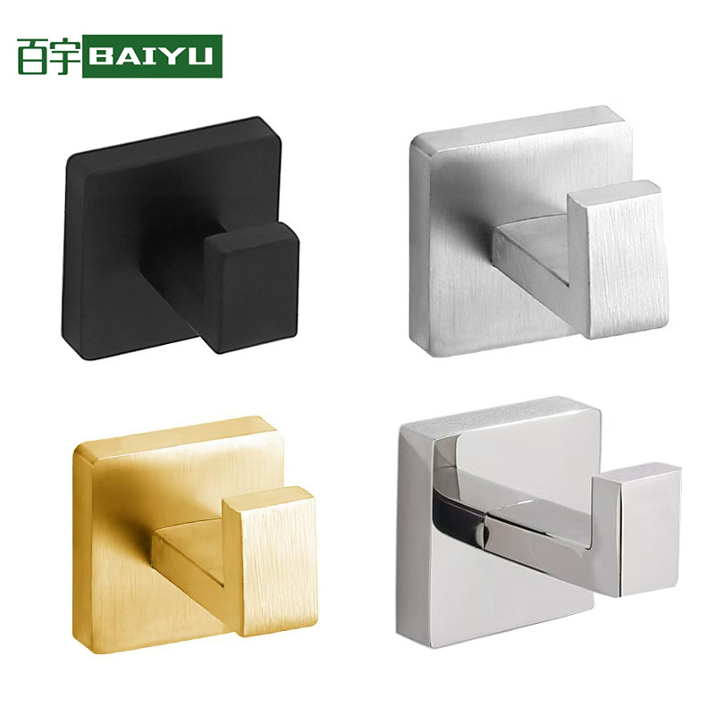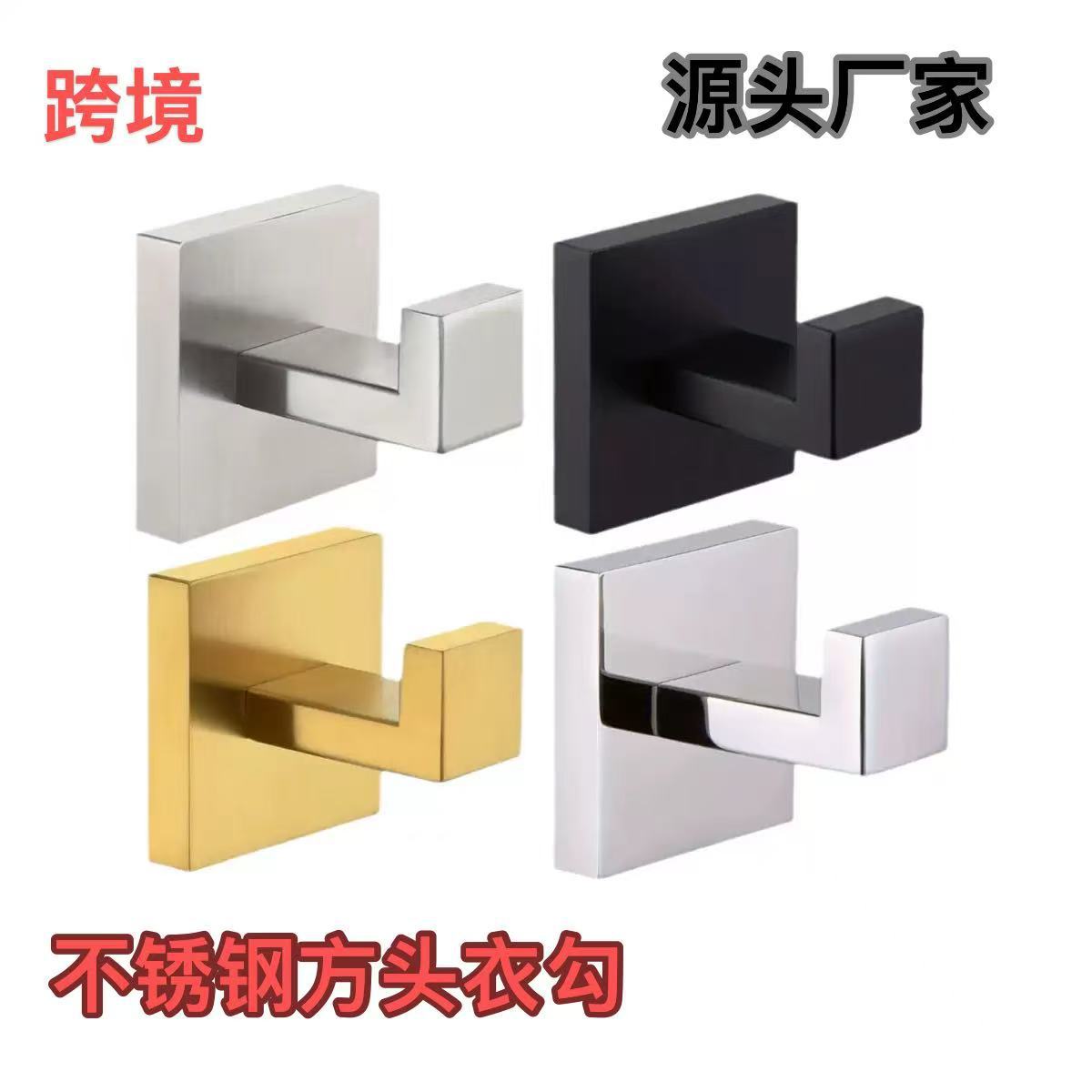 跨境挂钩单钩毛巾挂钩方形酒店浴室卫生间打孔衣帽钩挂钩黑色衣钩