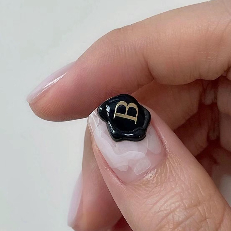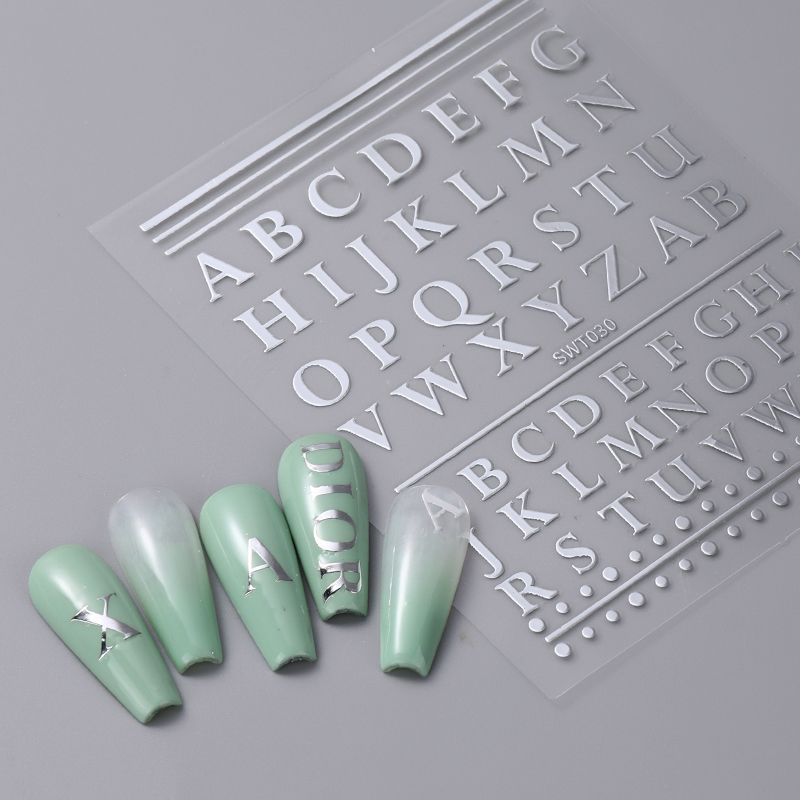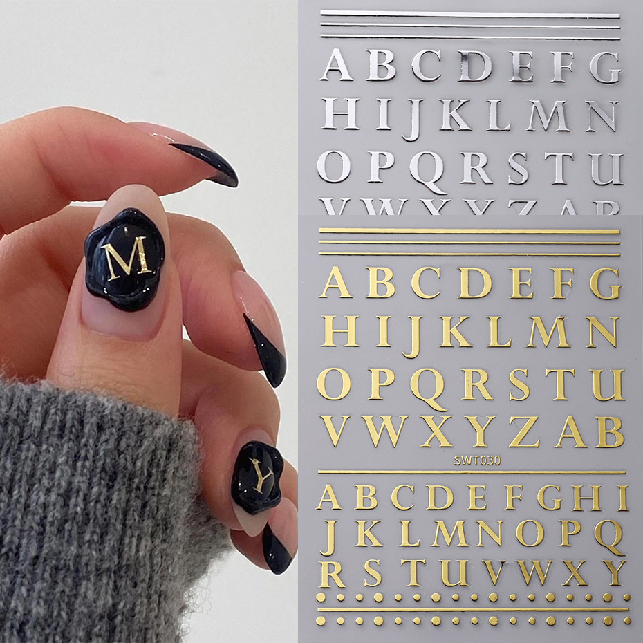夕刻の熱いネイルシールins火漆印鑑箔押し銀英語アルファベットのネイルシール