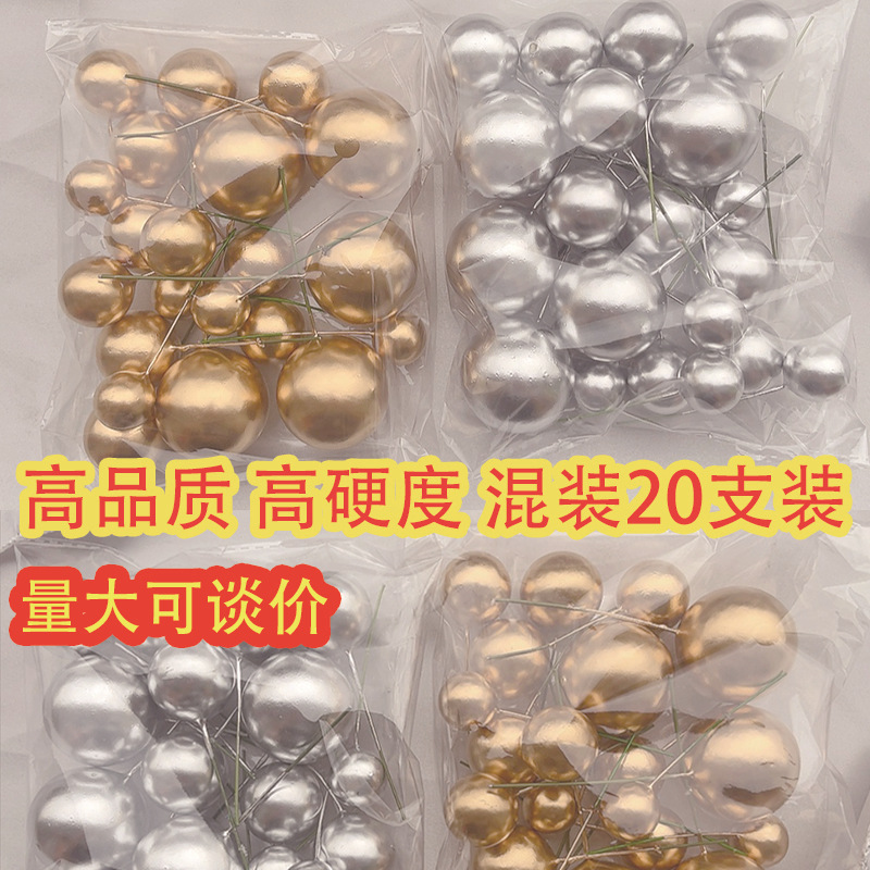 越境ケーキ装飾金球銀球泡球プラグインクリスマス球焙煎デザート台部品20本混合