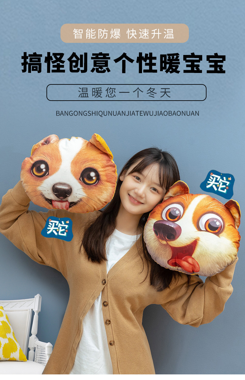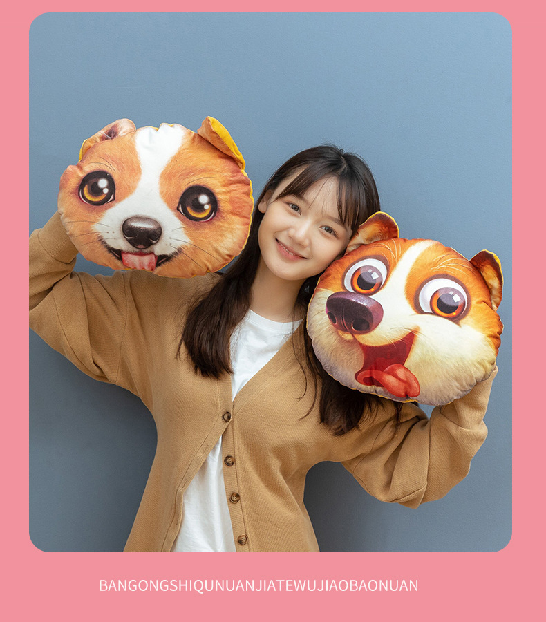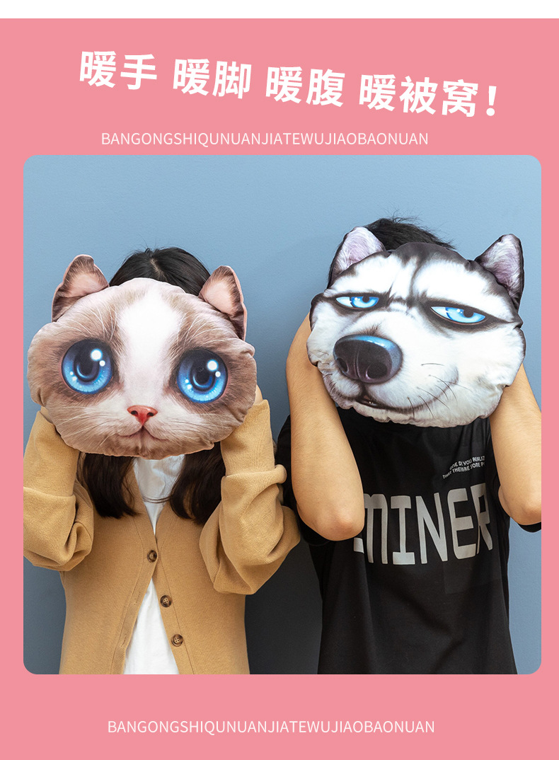 ディザトーン同モデルのぬいぐるみハスキー犬の頭が手に入った暖かい手の赤ちゃんの昼寝毛布抱き枕オフィス両用