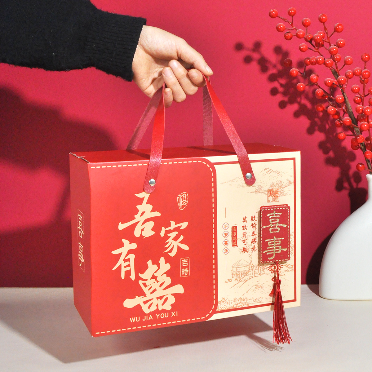 喬迁の喜寿比南山手提げ喜糖箱寿宴伴手礼箱回礼箱対ボタン箱空箱卸売り