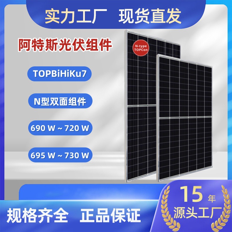 アテス ハイパワー N タイプ単結晶シリコン両面デュアルコア PERC バッテリーコンポーネント BiHiKu7