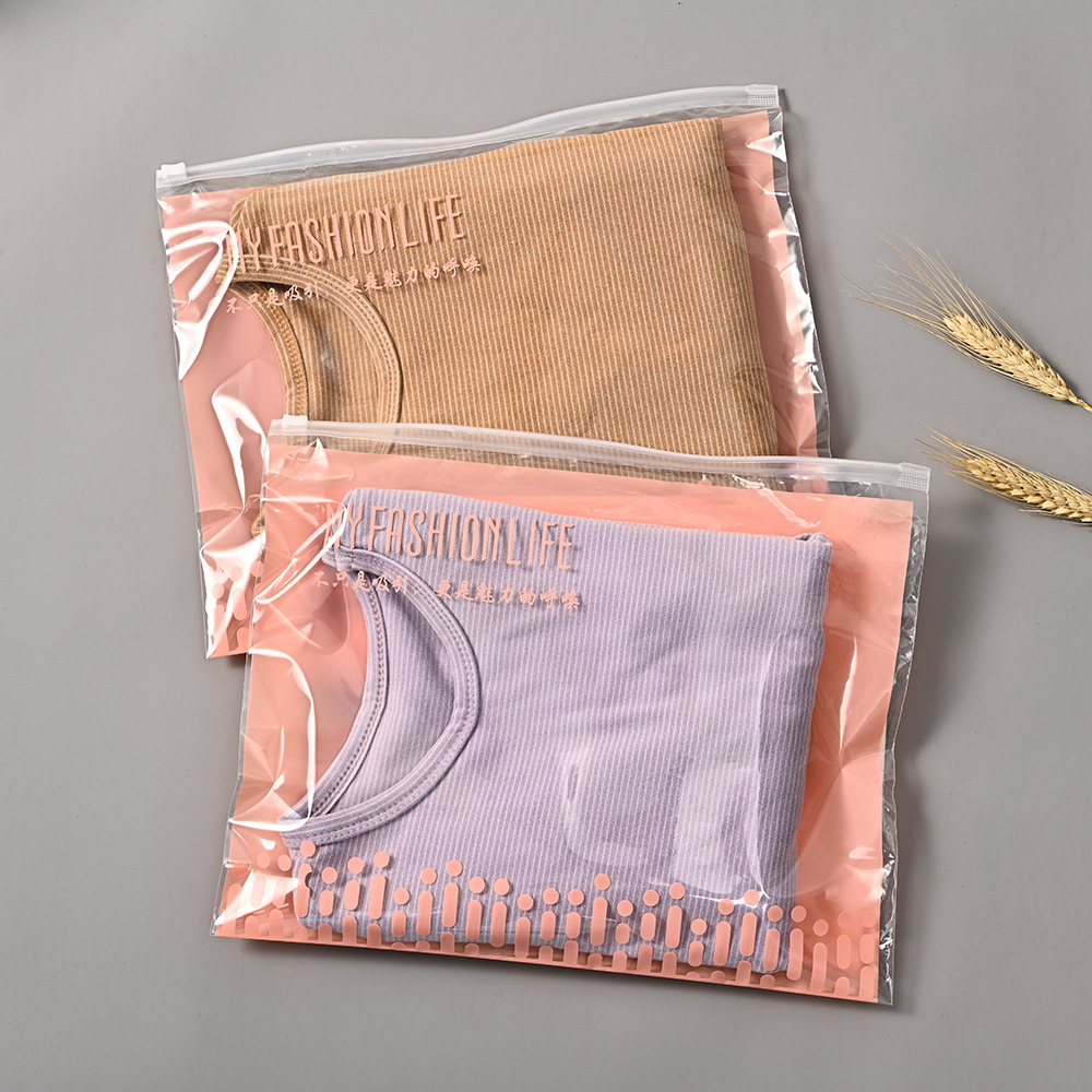 厂家直供PPE高透拉链自封袋 印英文字母文胸保暖背心包装袋
