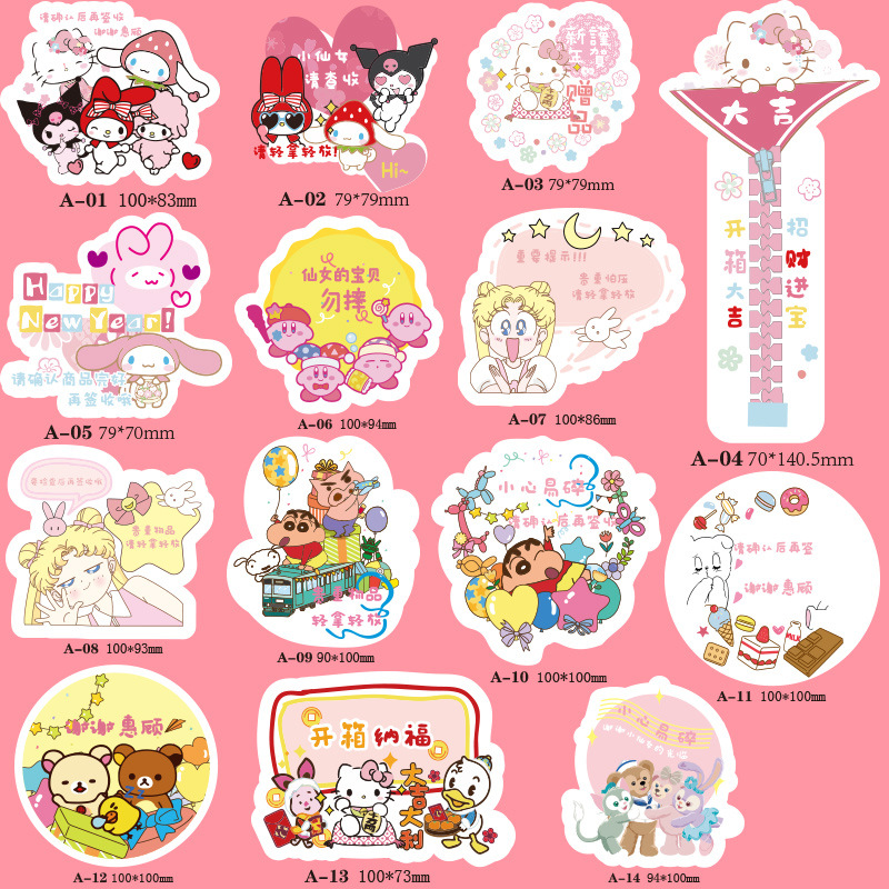 在庫あり 可愛い個性派ステッカー 宅配物流警告ステッカー 粘着式 壊れ物ラベル 少量注文対応 裏面粘着