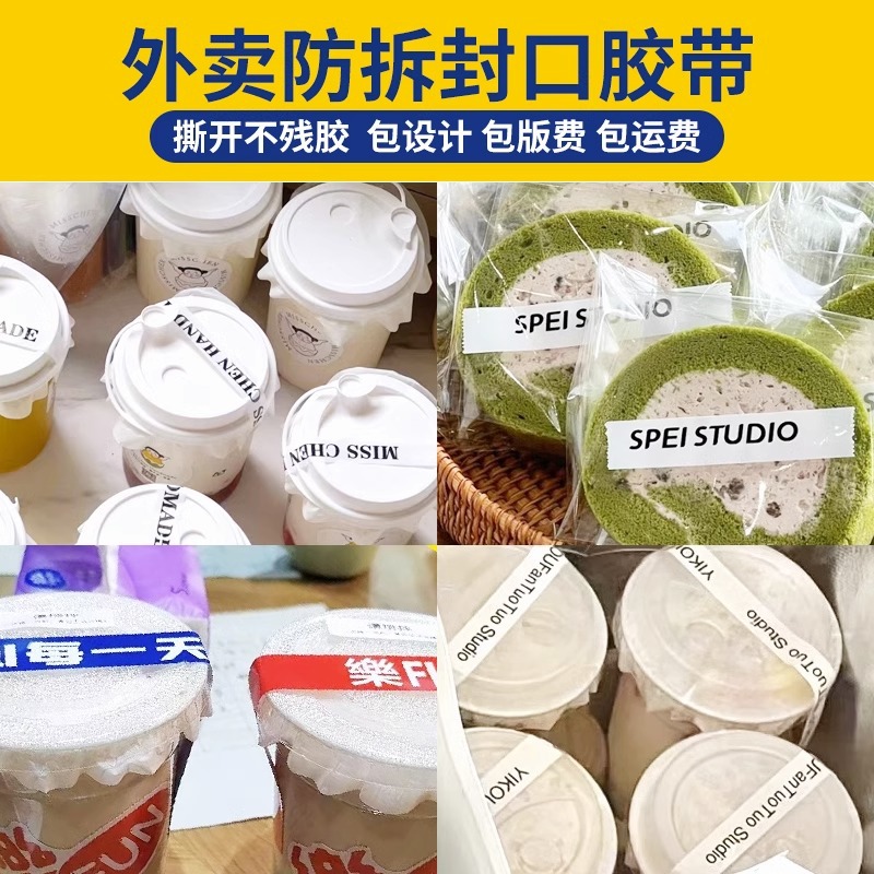 テイクアウト用テープ、ミルクティー、コーヒー、ペストリーの包装用、安心のシールテープ、BOPP、ロゴや素材のカスタマイズ可能