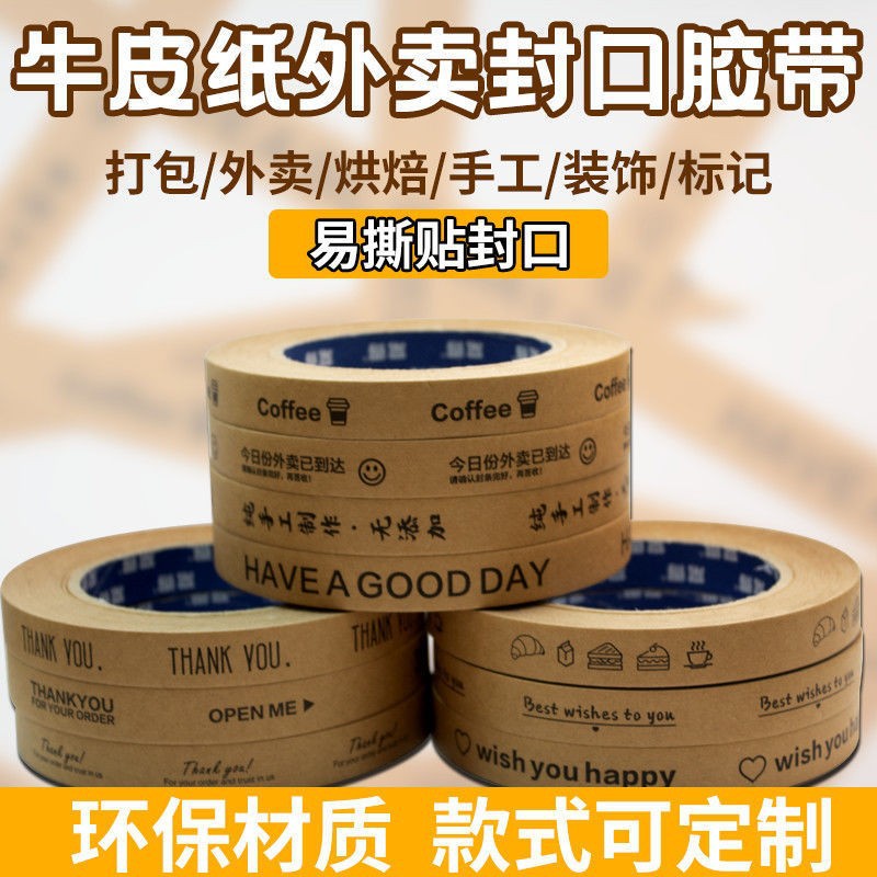 高粘不翘边 牛皮纸外卖封口胶带 奶茶咖啡外卖封口贴长条客制胶带