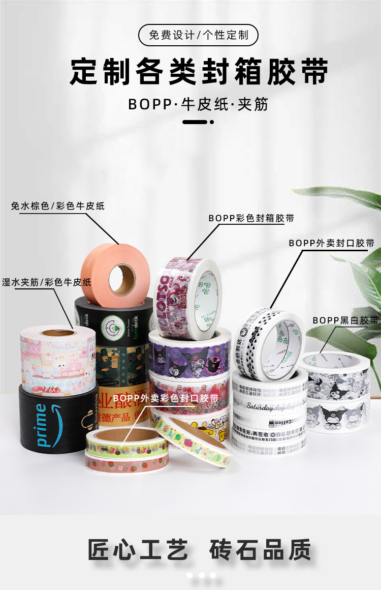 小批量印刷免水夹筋牛皮纸胶带 带纤维胶带彩色logo自粘牛皮纸胶