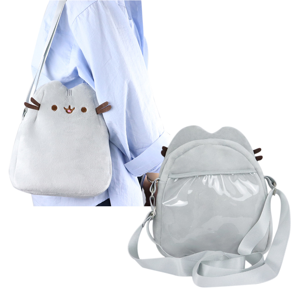アニメの灰色の猫の斜めのショルダーバッグが可愛いです。