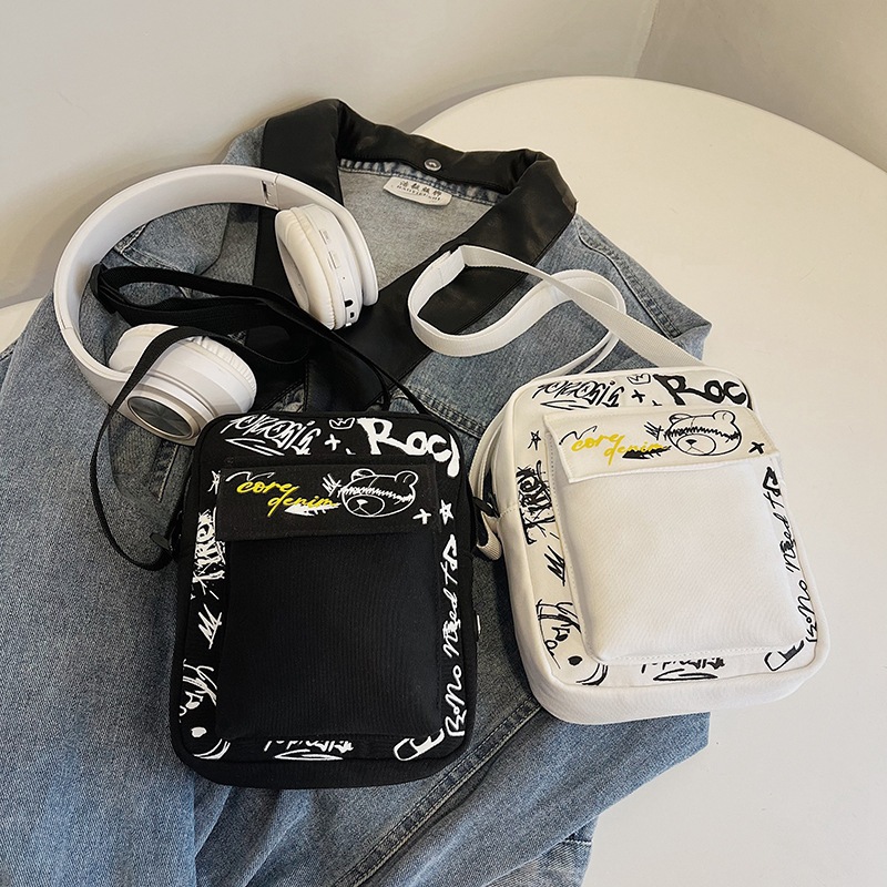 2025年夏新作 ハンドバッグ ホットセール 都市系ワークウェア レディース ショルダーバッグ グラフィティ文字 ベアープリント クロスボーダー