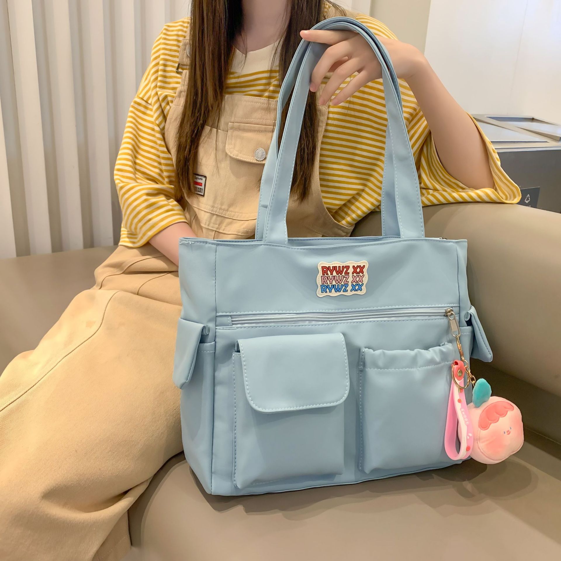 2024年 日本風 無地 インス風 ハンドバッグ レディース カジュアル シンプル トートバッグ 大容量 ショルダーバッグ 学生向け 多用途