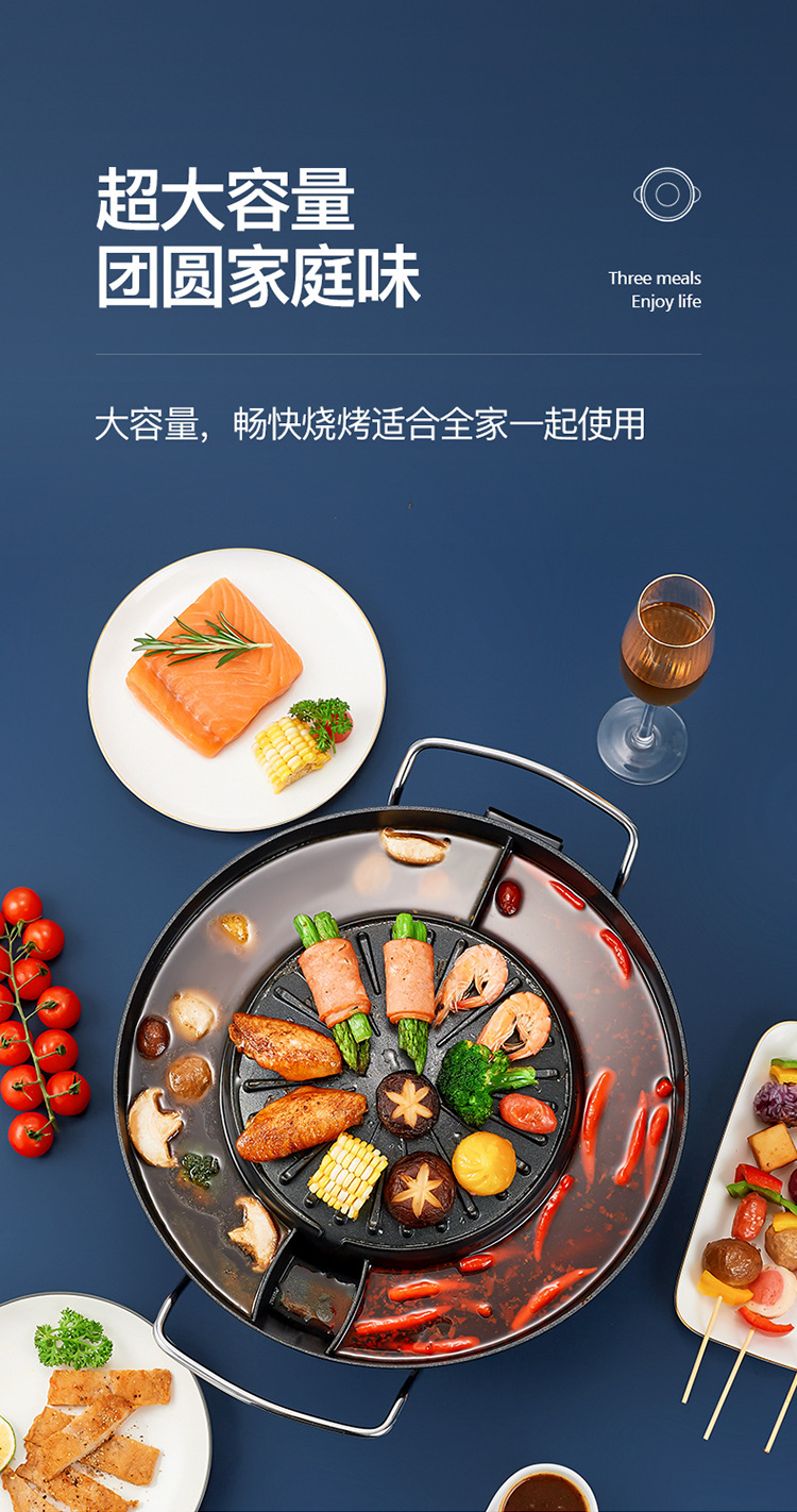 鍋焼き一体鍋家庭用多機能焼肉皿電気焼き皿オーブン焼肉機商用焼きしゃぶしゃぶ一体鍋