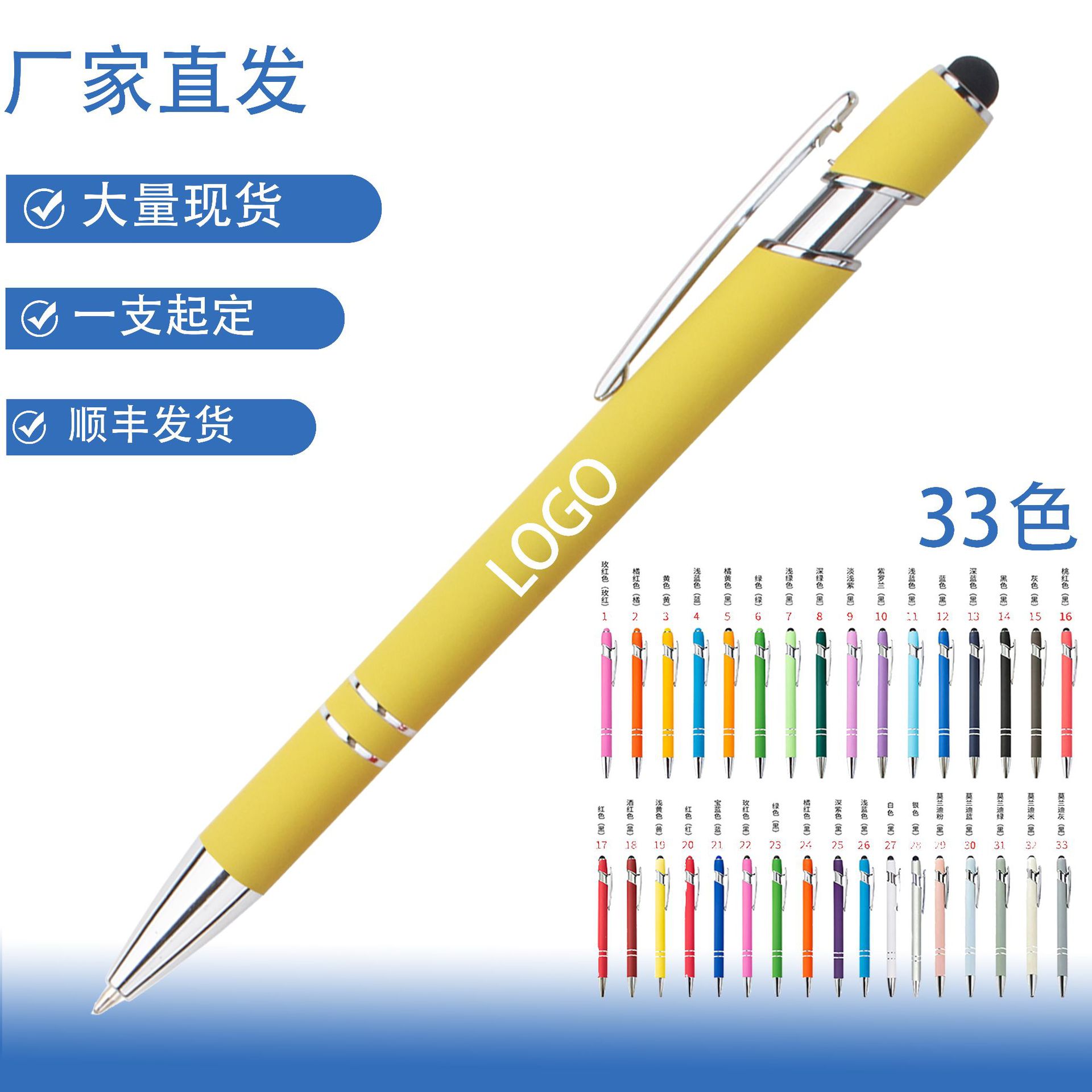 厂家批发按动美极笔触屏喷胶金属圆珠笔可印刷logo广告礼品圆珠笔
