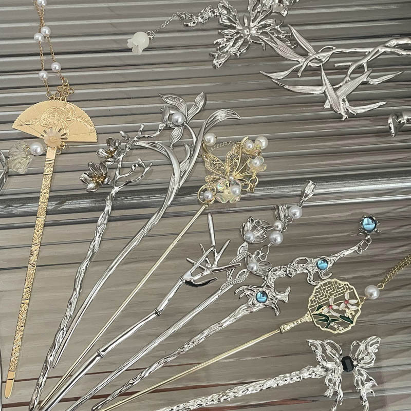 新商品のフリンジヘアかんざし新中国式高級感金属かんざしシンプル古風一字髪かんざしレトロ盤発卸売り
