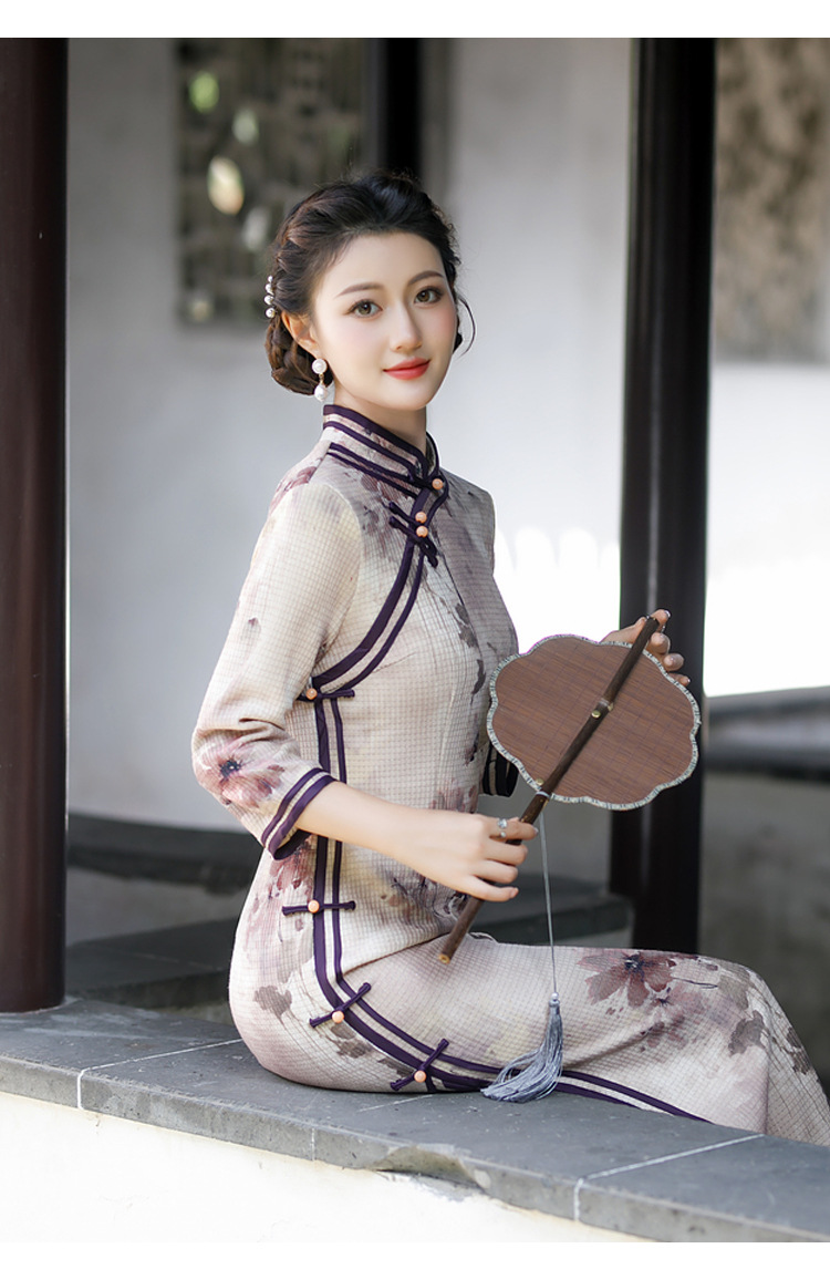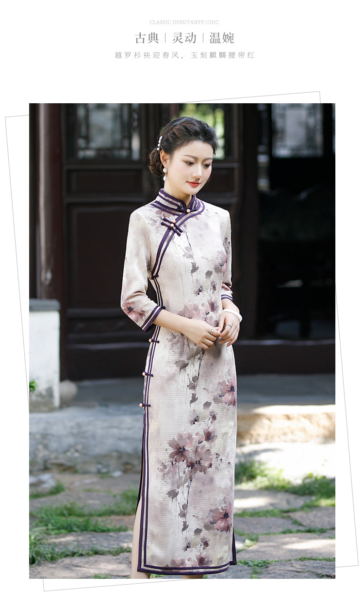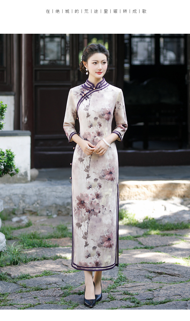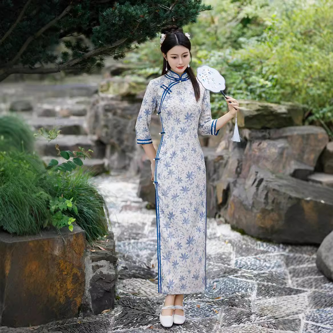 Chenxi 2025 春の新作チャイナドレス中国風改良されたファッションロング七分袖蘇州チャイナドレス