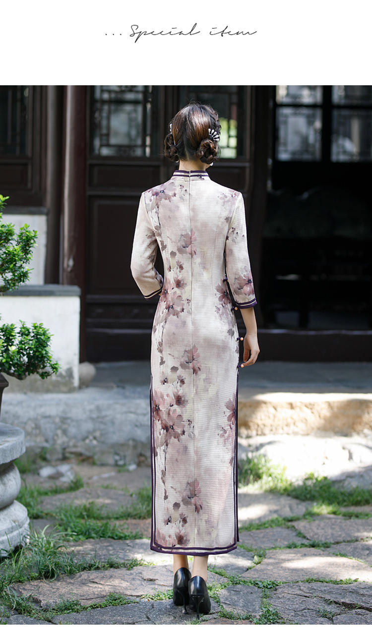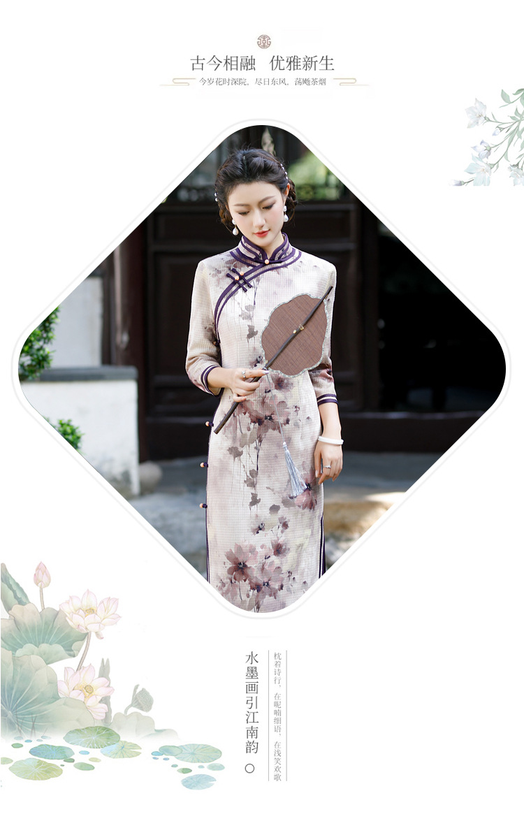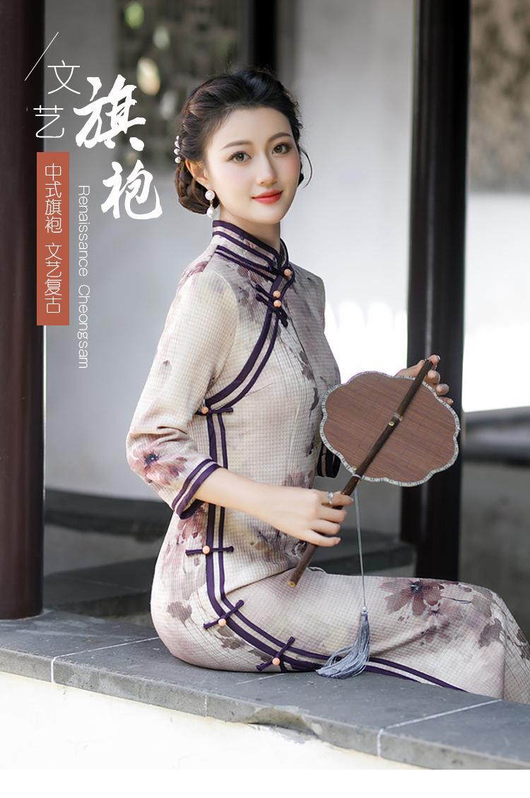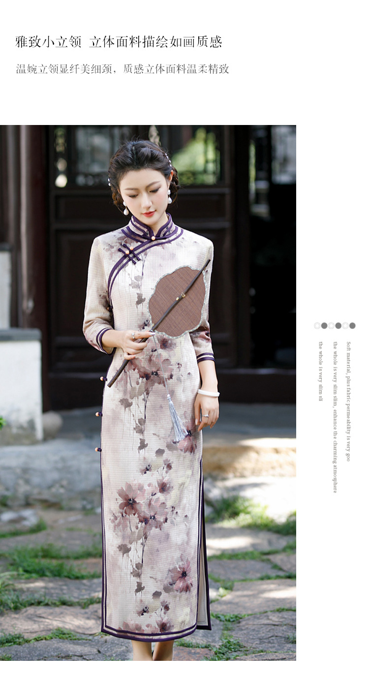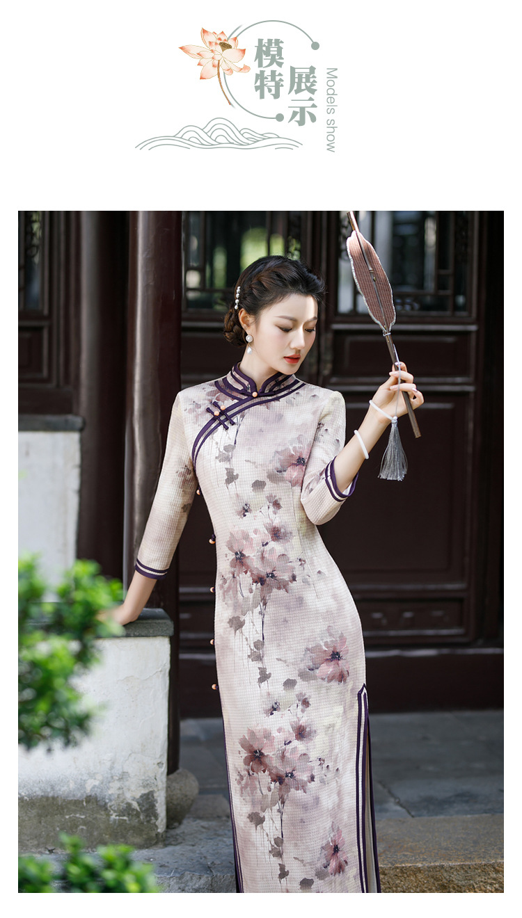 Chenxi 2025 春の新作チャイナドレス中国風改良されたファッションロング七分袖蘇州チャイナドレス