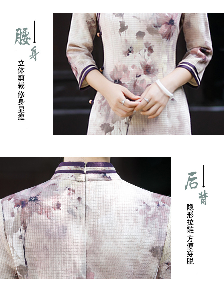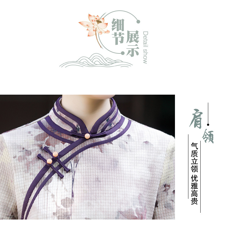 チャイナドレス 2025 新スタイル模造香り雲糸ミッドレングスマザーズドレスファッショナブルな大きいサイズのデイリーチャイナドレス