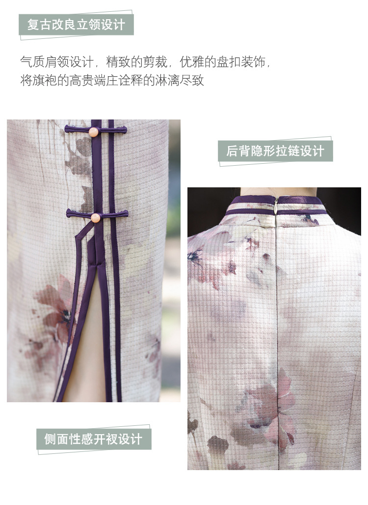2025新款中国风木兰棉旗袍女夏季七分袖中老年妈妈大码旗袍