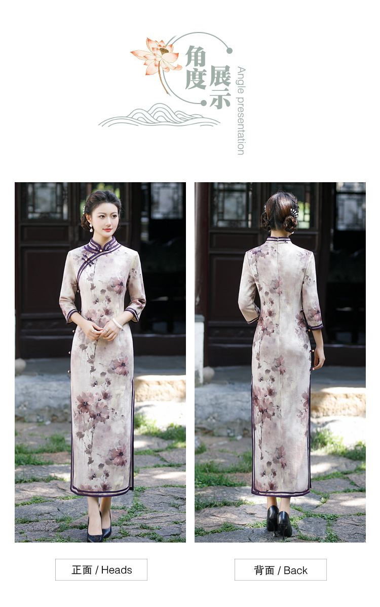 2025年秋新作 中華風七分袖 上海風レトロ民族風 中高年向け 太ったお母さん向け 大きいサイズ ロングチャイナドレス