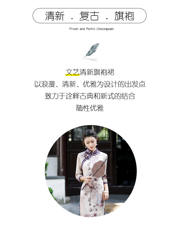 新中国式の国風のチャイナドレス秋冬の新型の中で、中国式のスタンドカラーのチャイナドレスの中で、スリットの雰囲気が優雅です。