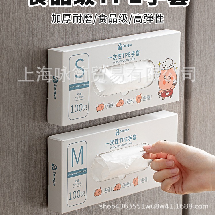 日本の磁気吸引可能な壁掛けTPE抽出式使い捨て手袋食品級は耐久性のある家庭用台所で焼く