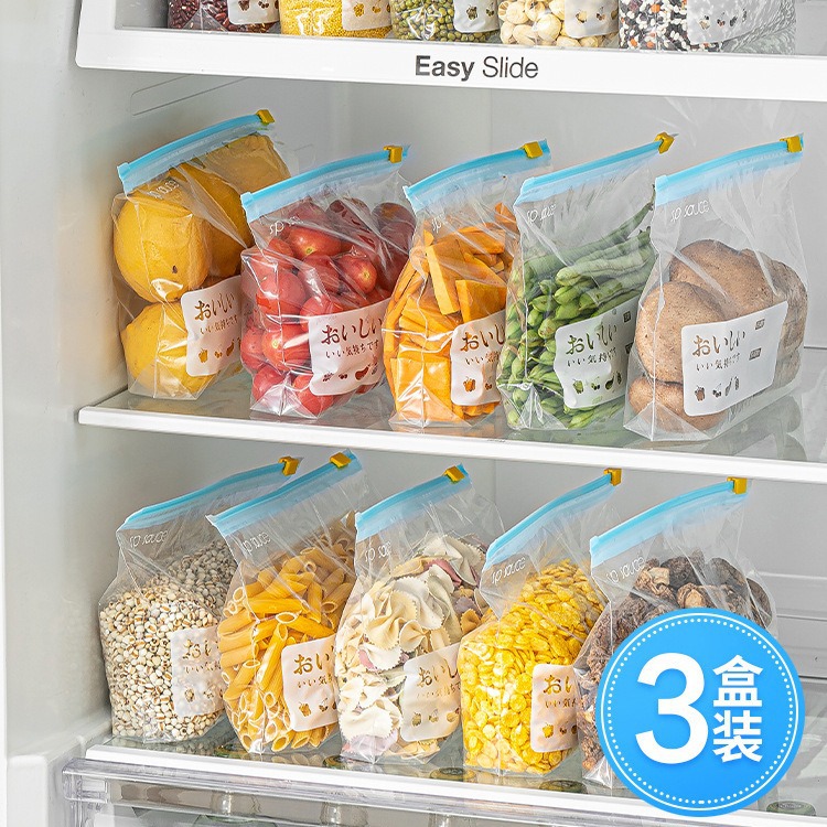 日本の厚い鮮度保持袋食品級家庭用冷蔵庫果物と野菜の密封袋のチャック式の密封口付き食品の密封袋