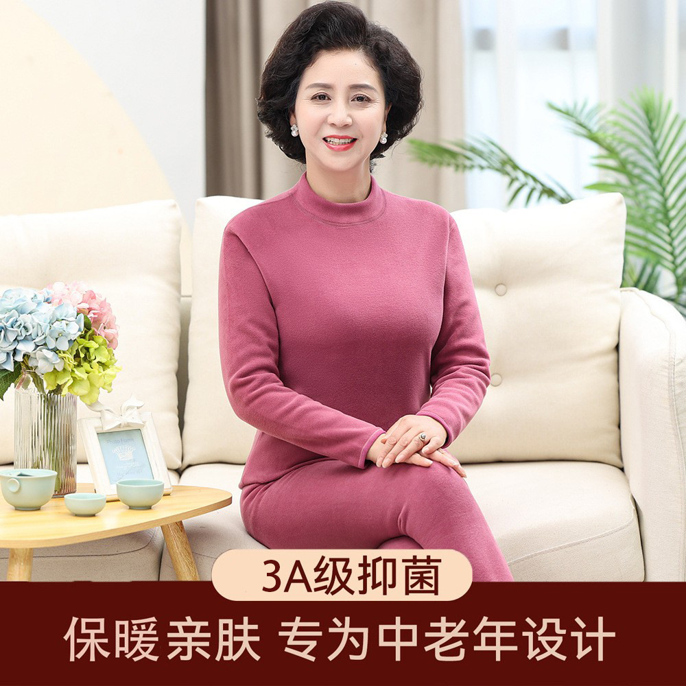 中老年女士秋衣秋裤大码妈妈保暖内衣套装老人加绒加厚内搭棉毛衫