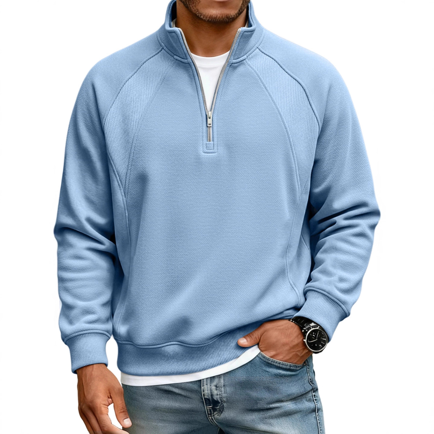 2026新款男装外套半拉链立领卫衣男生t恤长袖纯色拼接宽松加绒