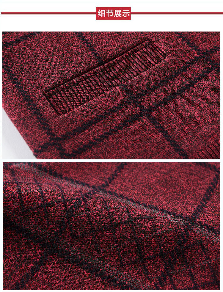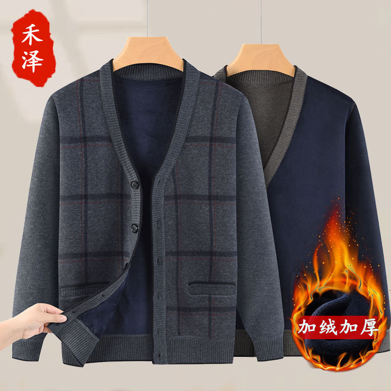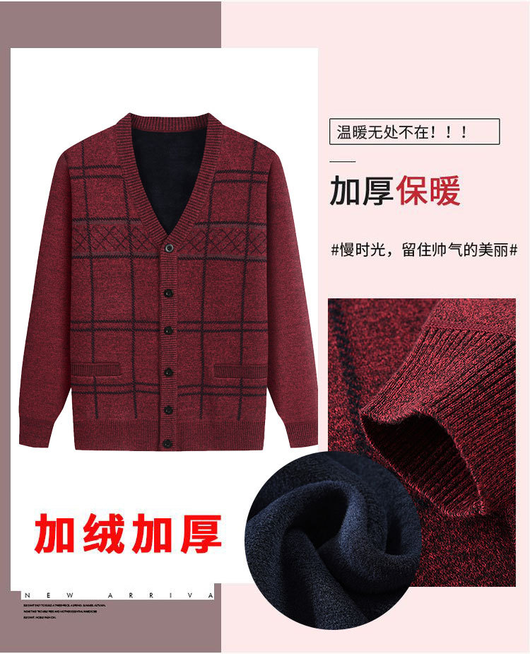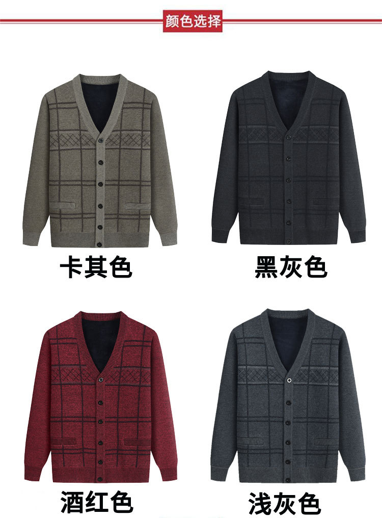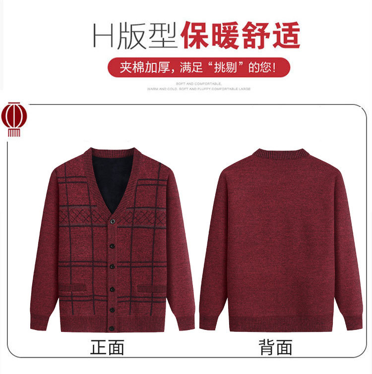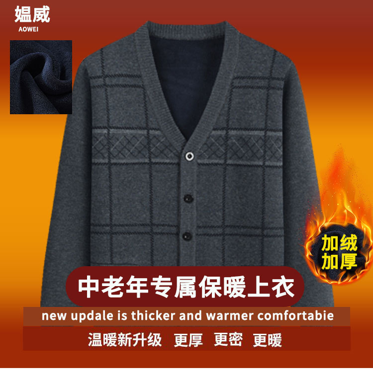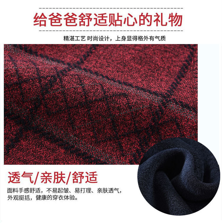 中老年爸爸秋冬毛衣加绒长袖针织衫老人男装开衫外套爷爷加厚衣服