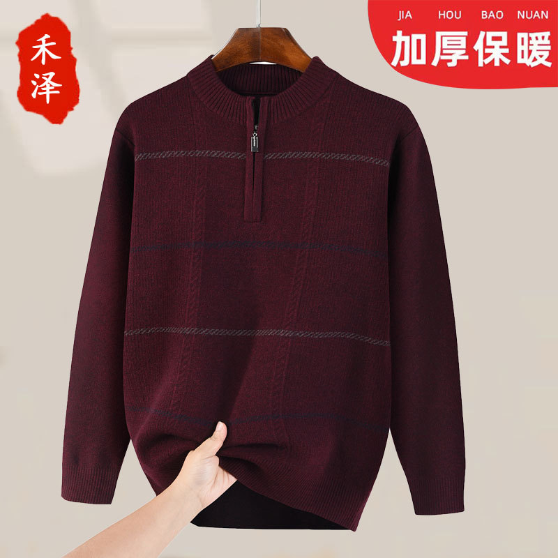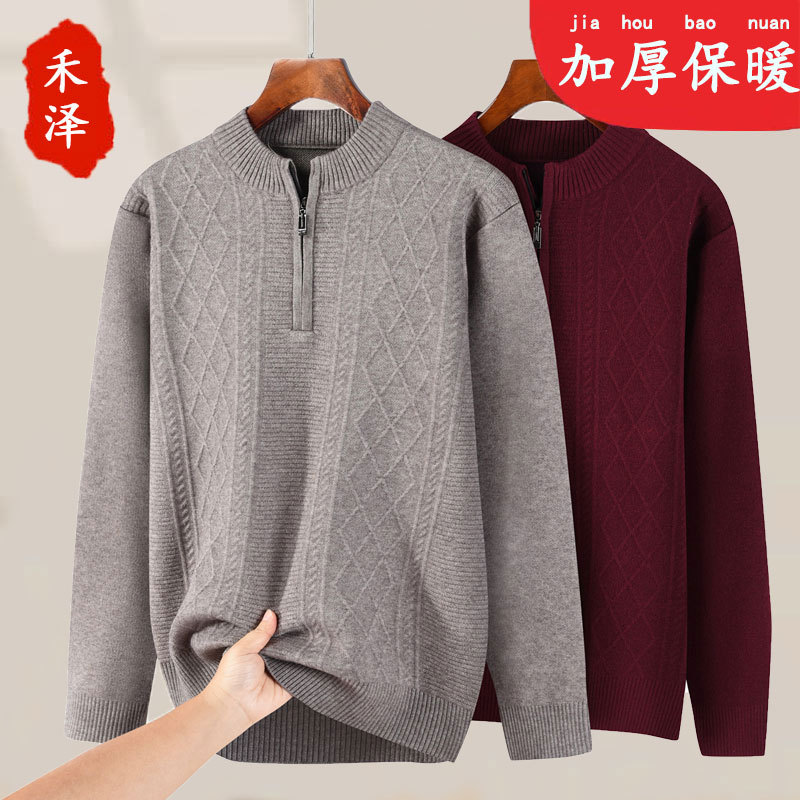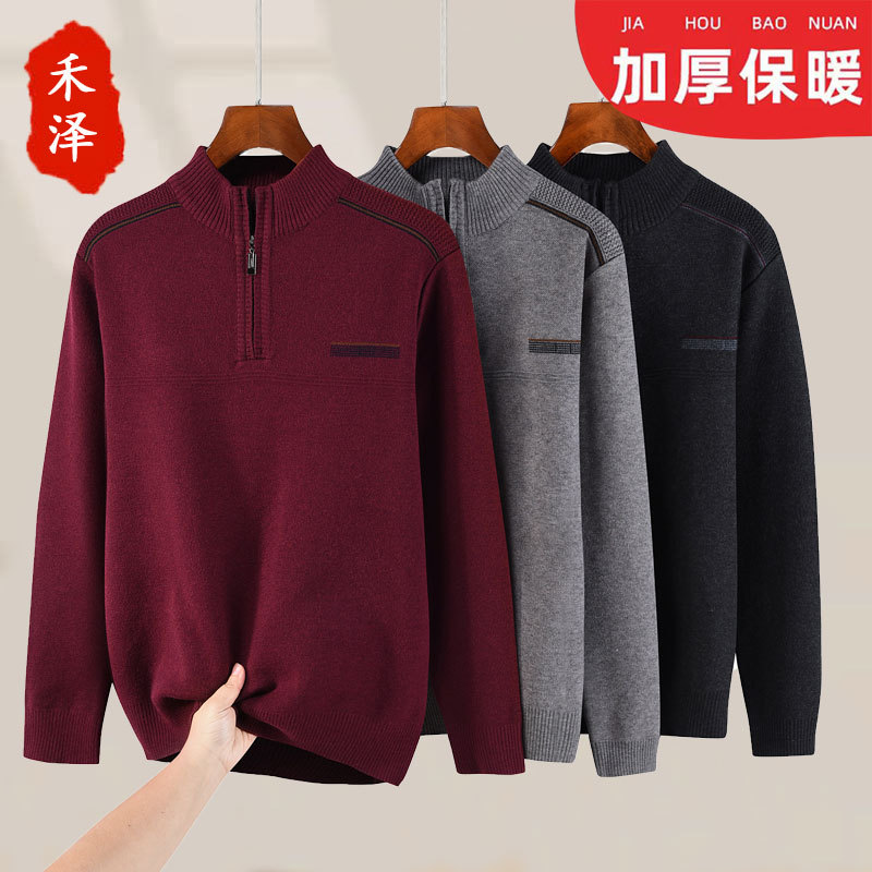 中高年男性半高襟ジッパーニット男服お父さん秋冬プルオーバー厚手セーター老人長袖