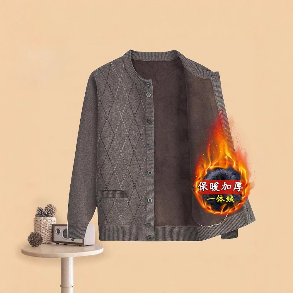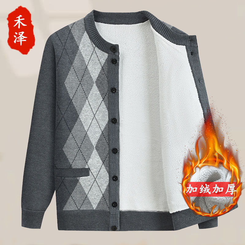 加绒加厚毛衣开衫中老年男装爸爸父亲爷爷秋冬长袖外套保暖针织衫