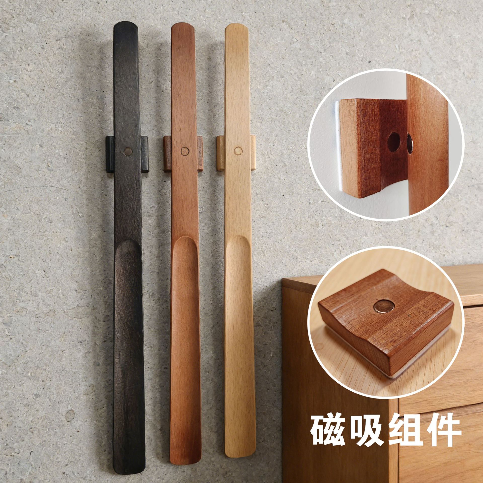磁吸鞋拔长柄胡桃色鞋抽孕妇懒人穿鞋老人提鞋实木杆鞋拔子免弯腰