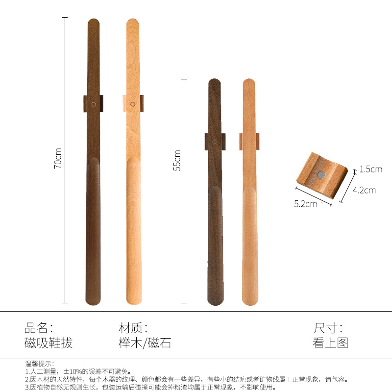 榉木磁吸鞋拔高档家用长柄提鞋器穿鞋器孕妇老人超长柄穿鞋不弯腰
