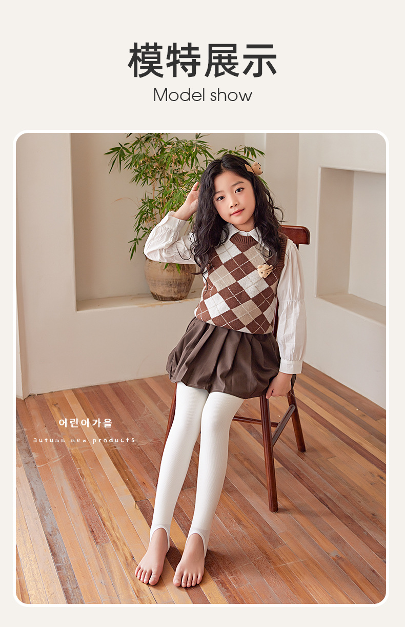 2023秋の新型麻花の中の子供は外でファッションの女の子を着てズボンの子供のストッキングの小さい花の蝶結びをします。