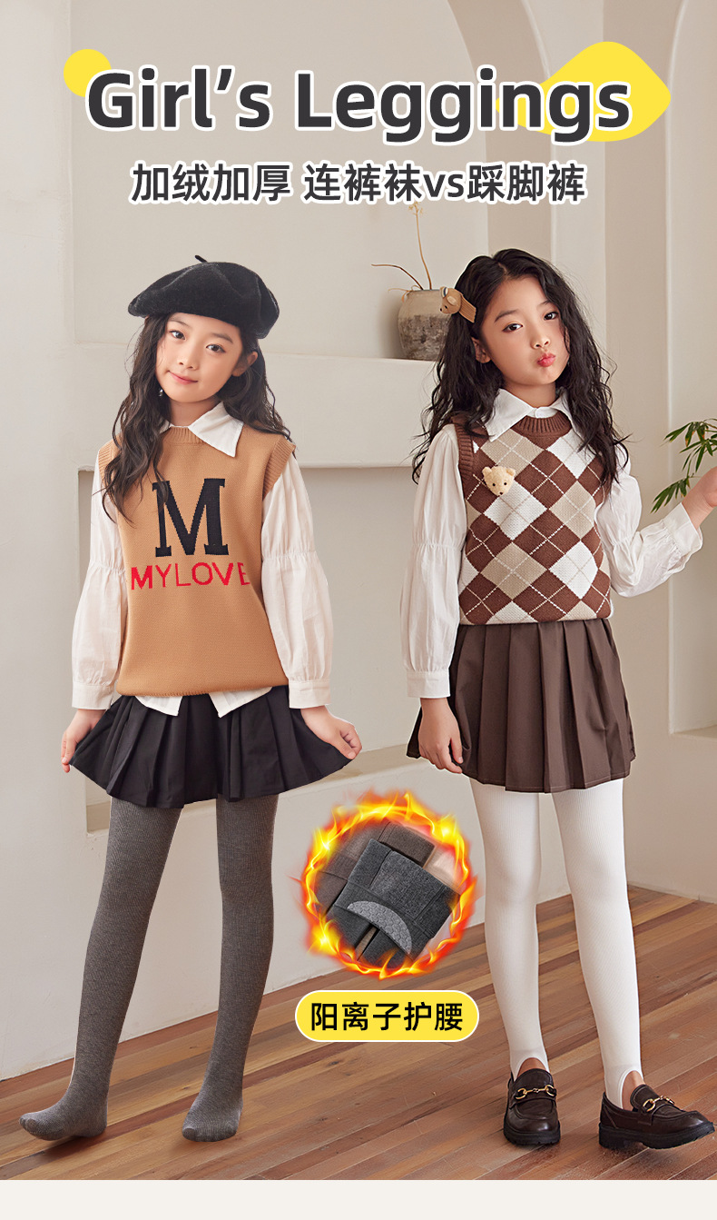 女の子のストッキングとベルベットの子供の縦縞のカシミヤの靴下の腰のズボンの中の子供は保温して足を踏んで靴下を履いている